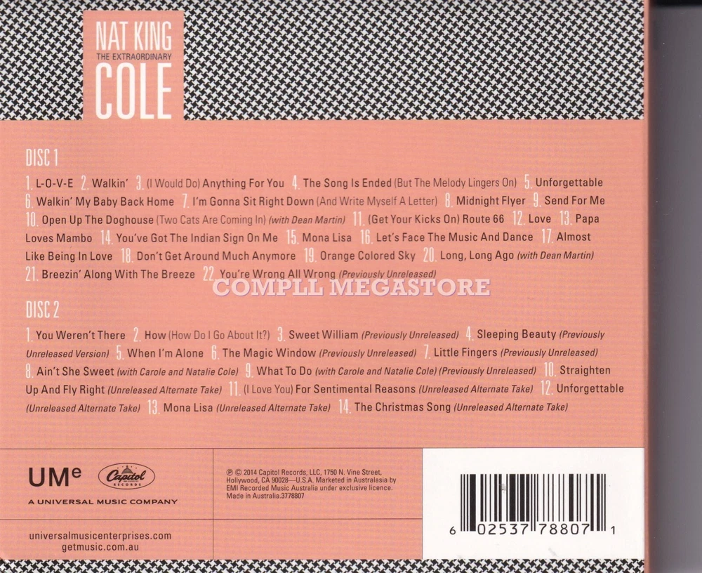 NAT KING COLE - THE EXTRAORDINARY / 2CD (AUSTRALIA) UNFORGETTABLE... For the full tracklisting and further details, please refer to the other photos. CD condition is Like New. ----- Please note this item qualifies for combined postage when purchased with other items.