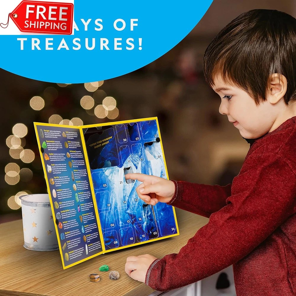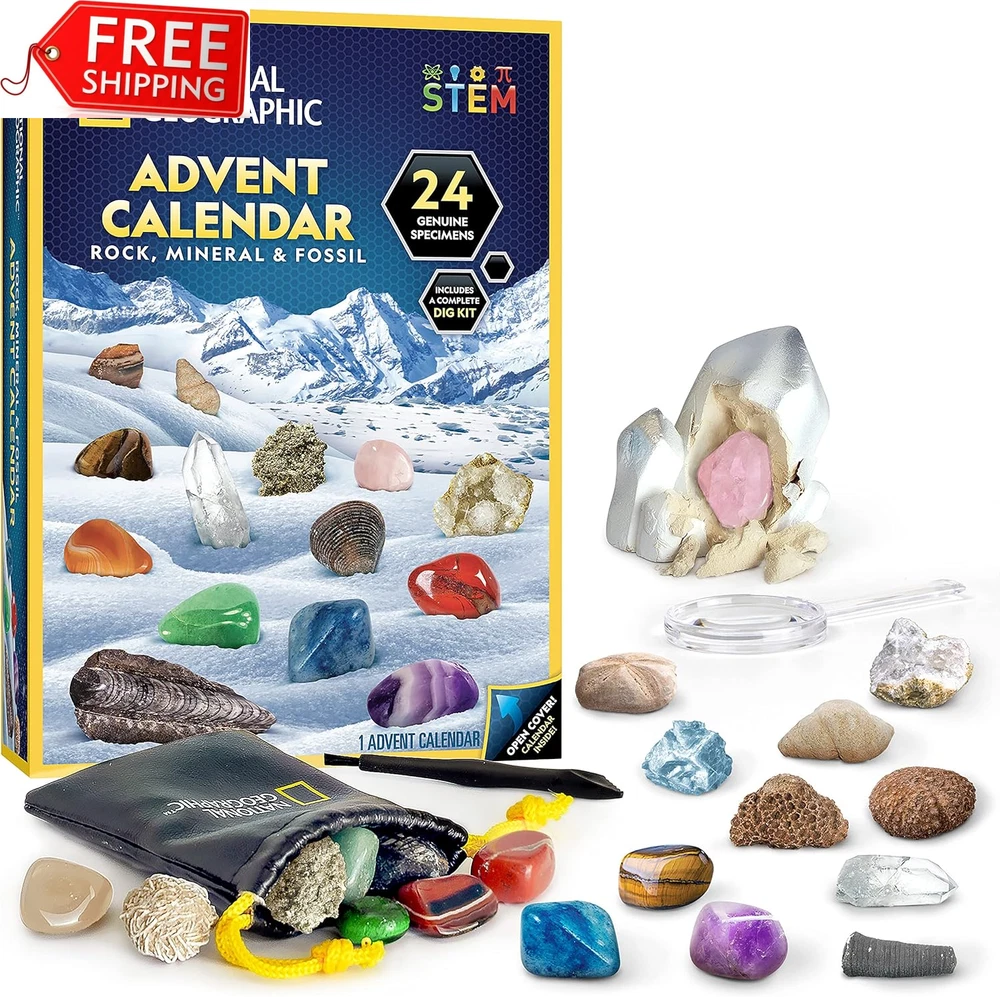 Store New Arrivals Add to Favorite View Feedback Contact NATIONAL GEOGRAPHIC Rock Collection Advent Calendar 2024 - Advent Calendar for K Description Condition New: A brand-new, unused, unopened, undamaged item in its original packaging (where packaging is ... Brand Does not apply Type Does not apply Item model number NGRMFADVENT2 Warranty Description We're proud to make the highest quality products which are backed Assembly required No Batteries required No Product Dimensions 7.28 x 1.69 x 10 inches Material Crystal,Gems Country of Origin China Item Weight 1.19 pounds Color Advent Calendar Theme Advent Age Range (Description) 6 years and up Included Components Advent Calendar, Minerals & Fossils, 24 Gemstones eBay NATIONAL GEOGRAPHIC Rock Collection Advent Calendar 2024 - Advent Calendar for Kids with 24 Gemstones, Minerals & Fossils for Kids, Complete Gem & Fossil Collection Christmas Countdown Calendar STUNNING SPECIMENS FROM AROUND THE WORLD - The polished rocks, gems, and fossils in this advent calendar include Geode; Pyrite; Rose Quartz; Red, Black, and Green-Spotted Jasper; Agate; Tiger's Eye; Brachiopod; Black Urchin & more! 24 DAYS OF TREASURES - Each day leading up to Christmas, kids open a panel to reveal a special rock, mineral, fossil or gemstone! With this Christmas countdown calendar, they can start a rock collection they will enjoy all year round, with storage bag included! DIG OUT A SPECIAL CRYSTAL ON THE FINAL DAY - The final piece in this collection is a stunning Rose Quartz specimen that kids will unearth from a mini dig brick. Dig tool and brush included, with a magnifying glass for looking at all the pieces up close! A HOLIDAY GIFT THAT LASTS A LIFETIME - Rock and mineral collecting is a popular hobby, and this rock collection kit is the perfect way to inspire a lasting love of geology for kids, and teach them about the fossils, rocks and crystals inside! HIGH-QUALITY EDUCATIONAL TOYS - National Geographic is proud to make the highest quality hands-on science toys, and all are backed by exceptional service and a commitment to your satisfaction. Product Description NATIONAL GEOGRAPHIC 2024 Rock, Mineral & Fossil Collection Advent Calendar The video showcases the product in use. The video guides you through product setup. The video compares multiple products. The video shows the product being unpacked. Celebrate the season with science and the National Geographic 2024 Rock, Mineral & Fossil Advent Calendar! Each day as Christmas approaches, kids will open an exciting new specimen to add to their collection, complete with collector's pouch! Celebrate the season with the 2024 Rock & Fossil Collection Advent Calendar! Kids love rocks, gems, and fossils, and this exciting Christmas countdown calendar will give them a new specimen to add to their collection each day as the holiday approaches. The fun and excitement culminate on the final day, as kids unearth a shimmering rose quartz specimen from the included mini dig brick, just like a real geologist! This educational take on a classic holiday tradition includes the following rocks, gems, and fossils: Agate, Green Aventurine, Green Fluorite (Rough), Geode, Tiger's Eye, Snowflake Obsidian, Pyrite (Fool's Gold), Red Jasper, Blue Quartz, Red Agate, Amethyst, Blue Calcite (Rough), Polychrome Jasper (Rough), Quartz Point, Rose Quartz (in dig brick), Crinoid, Brachiopod, Orthoceras, Bi-Valves, Gastropod, Clam, White Urchin, Coral, and Black Urchin. This advent calendar also includes a pouch for storing their treasures, as well as a magnifying glass and identification sheet for closer examination of their new collection. Rock and mineral collecting is a fascinating and popular hobby kids love, and the 2024 National Geographic Advent Calendar is a great introduction for boys and girls with an interest in geology. They'll love collecting and learning about these premium rock, fossil and mineral specimens that were formed over millions of years! Put a scientific twist on the holidays this year with the National Geographic Rock, Mineral & Fossil Advent Calendar! We make the highest quality hands-on science toys, and all products are backed by exceptional service. With a mission to inspire people to care about the planet, the National Geographic Society is one of the world’s largest nonprofit scientific and educational organizations. Countdown to the Holidays with National Geographic Advent Calendars! 24 Magic Tricks & Experiments Kids will perform a fun magic trick or cool science experiment each day! Gems, Jewelry Settings & More! Discover one of 24 gorgeous gemstones each day leading up to Christmas! 24 Experiments & Specimens Kids will conduct an experiment or uncover a rock or fossil specimen each day! Celebrate with Science! Celebrate the season with science and magic fun for the whole family! Celebrate with Science! Explore the wonders of geology and start a collection with these specimens! Celebrate with Science! Celebrate the holidays with hands-on science and geology fun for everyone! Item model number NGRMFADVENT2 Warranty Description We're proud to make the highest quality products which are backed by exceptional service. Assembly required No Batteries required No Product Dimensions 7.28 x 1.69 x 10 inches Material Crystal,Gems Country of Origin China Item Weight 1.19 pounds Color Advent Calendar Theme Advent Age Range (Description) 6 years and up Included Components Advent Calendar, Minerals & Fossils, 24 Gemstones Shipping Fast shipping is very important for us. Our standard US shipping service is FREE. Your order will be shipped within 1-3 business days upon full payment received. Your order will be delivered within 1-3 business days after the handling time. We reserve the right to cancel any order for any reason at any time. We are not responsible for undeliverable addresses. Returns and payment We offer a 30-day return policy from the date of payment received. This return policy covers Incorrectly Shipped items, Br