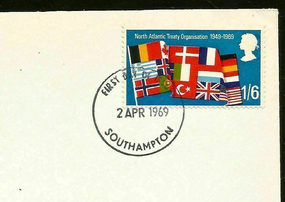 Country/Region of Manufacture: United Kingdom Era: Elizabeth II (1952-Now) Cancellation Type: First Day of Issue Year of Issue: 1969 Topic: NATO Place of Origin: Great Britain