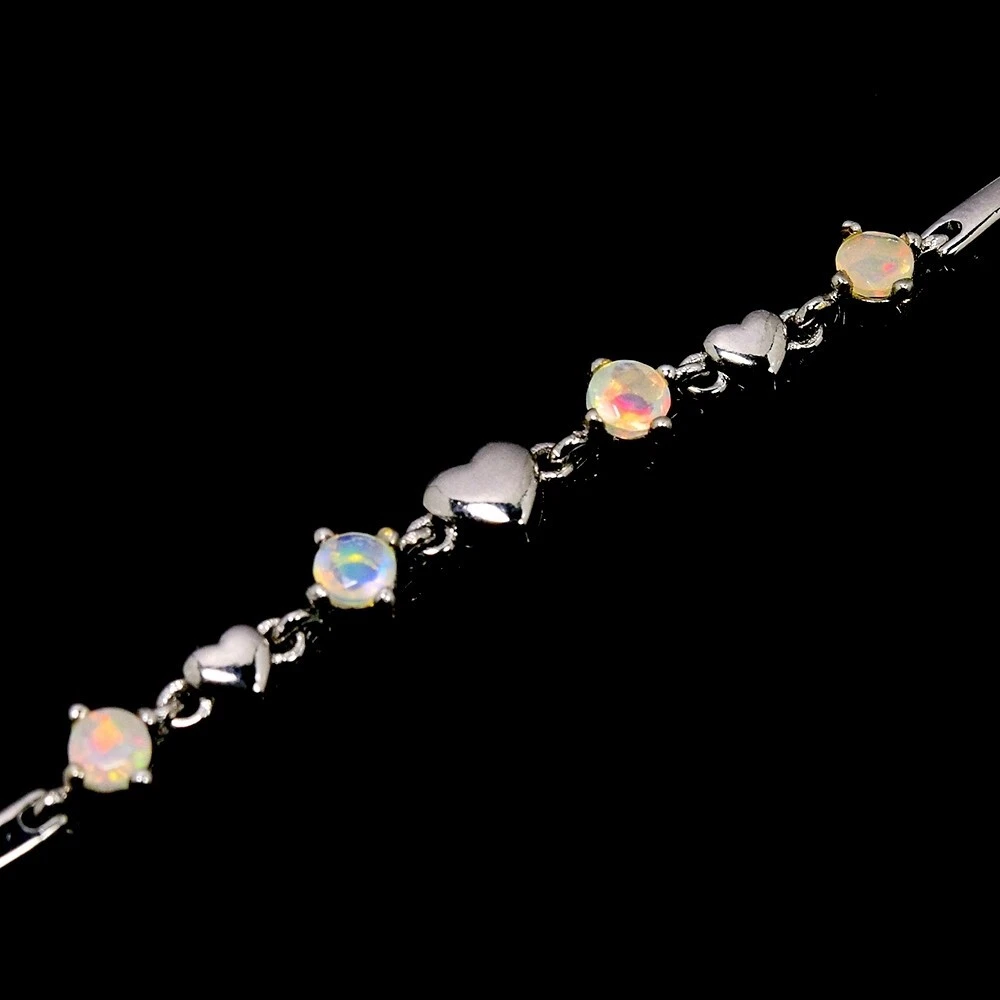 NATURAL AAA RAINBOW OPAL ROUND STERLING 925 SILVER BRACELET LENGHT 7-8 INCH.