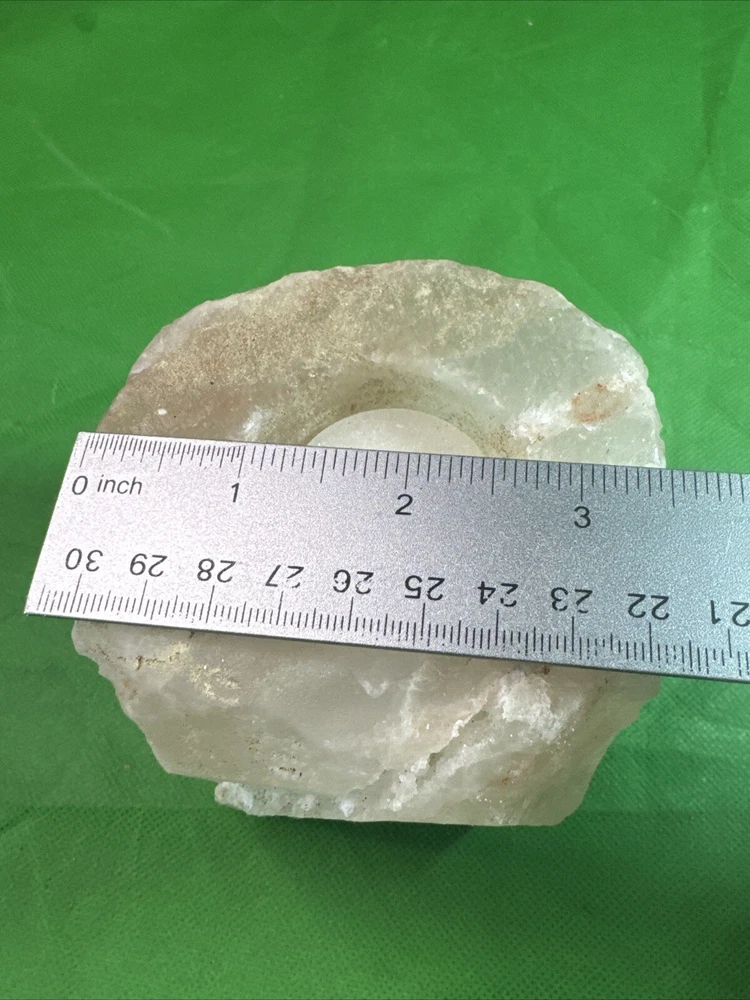 This natural pink rose quartz crystal geode votive candle holder from Brazil is 3.5 inches in size. It features a unique geode shape and is perfect for displaying candles or as a decorative piece.