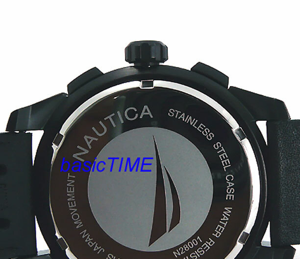 WE DO NOT SELL REPLICAS! 100% BRAND NEW AND AUTHENTIC! *SELLER RETIRING*SUPER CLEARANCE* MEN'S NAUTICA CHRONOGRAPH N28001G 100% BRAND NEW AND AUTHENTIC...GUARANTEED!!! JAPAN MOVEMENT BLACK DIAL WITH ORANGE ACCENTS DATE CALENDAR BLACK ION COATED SOLID STAINLESS STEEL CASE AND BUCKLE WITH NAUTICA SIGNATURE GENUINE BLACK LEATHER STRAP SCREW LOCKING CROWN WITH NAUTICA LOGO 100m/330ft WATER RESISTANT MINERAL CRYSTAL CASE DIAMETER IS 48.5mm EXCLUDING CROWN BY 14.5mm HIGH WEIGHS 3.9oz (111g) WRISTS UP TO 8-1/2" COMES IN NAUTICA PRESENTATION GIFT BOX MSRP $250