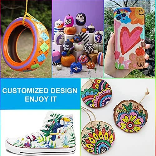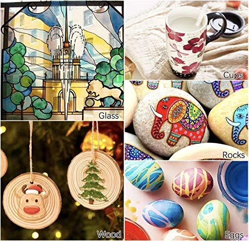 Why choose Our Paint Marker Pens ? - Come with a set of 35 colors to match any project. - Extra-fine nylon tips with writing smooth flow, no mess. - The ink is water-resistant and fade-resistant for a durable finish. - Each marker pen is filled with 3 ml/7 ml of ink to handle numerous projects. - Odorless, non-toxic and conform to ASTM D-4236 and EN-71 safety standards . -Consistent flow ensures a uniform look from start to finish. WHAT ARE COMMON USES? Nawod Acrylic paint pens are ideal for rock painting , mug painting, stone, metal, pottery, treated smooth wood, porous surfaces, plastic, cardboard, canvas, fabric, polymer clay, DIY art crafts, card stock, photo album scrapbook journal and more! One popular use is to draw a custom birthday card and Festival Greeting card with the wonderful 35 colors available to you. HOW DO I USE IT? In order to get the best results, it is important that the following instructions are followed: 1: Shake the paint pens a few times lightly. 2: Carefully push the tip up and down to draw. 3: Test paint pens on paper before use. 4: Express your passion after the ink flushing the pen tip. WHAT COLORS ARE INCLUDED? Vibrant colors including napoleon blue, lightning yellow, marigold, orange, deep scarlet, rose pink, tatarian aster, emerald green, black, white, metallic gold, metallic silver,etc. HOW DO I MAKE THE INK PERMANENT ON GLASS OR CERAMIC? Simply place subject matter in oven at 350F for 1 hour. Friendly Reminder Put the lid on after use, as it drys easily if expose to air. If the tip drys out, you can press it again. 30-day free replacement & full refund with no reason required. DOUBLE PACK -- Each package includes both 20 extra fine tip acrylic paint pens and 15 medium tip acrylic paint pens for both detailing and filling large areas. Double boxed for long lasting pen durability. Great Christmas gift idea for kids to express their imagination. Bring color into your life and create decorative products for birthdays, Easter Day, Christmas Day, Valentine's Day, Thanksgiving Day or special holidays. Multi-Purpose -- Enjoy creating art projects on a variety of surfaces like Rock painting, ceramic and mug painting, glass and wine glass painting, wood, fabric, stone, metal, plastic, canvas, Easter plastic eggs, Christmas ornament, Halloween pumpkin painting decorating kit, wood craft, custom mugs, and much more for both smooth and porous surfaces. FEATURES OF OUR ACRYLIC MARKERS -- 2 types of nibs to meet various need, bright and long-lasting colors; quick dry, non-toxic, non-odor; water-based and opaque ink; result in waterproof and sunproof permanent look when dry yet clean up easily while still wet. Nawod paint markers conform to ASTM D-4236 and EN-71 safety standard. Safe for use by children and adults. Premium Quality Paint Pens -- Each paint pen is filled with 3ml/7ml of ink to handle numerous projects. It can be easily applied or mixed in multiple layers without stains. Vivid, smooth writing permanent paint; long lasting nylon tips; clear pen body for checking paint color uniformity and volume. BEAUTIFUL ASSORTED COLORS AND PERFECT GIFT FOR ALL -- Come with 35 most wished colors set. Nawod paint pens perfect for artists, art students, children, teens and adults to use on arts and crafts projects. Great markers for paper, glass paint, wood paint, canvas paint, fabric paint, porcelain paint, plastic paint, DIY crafts making.