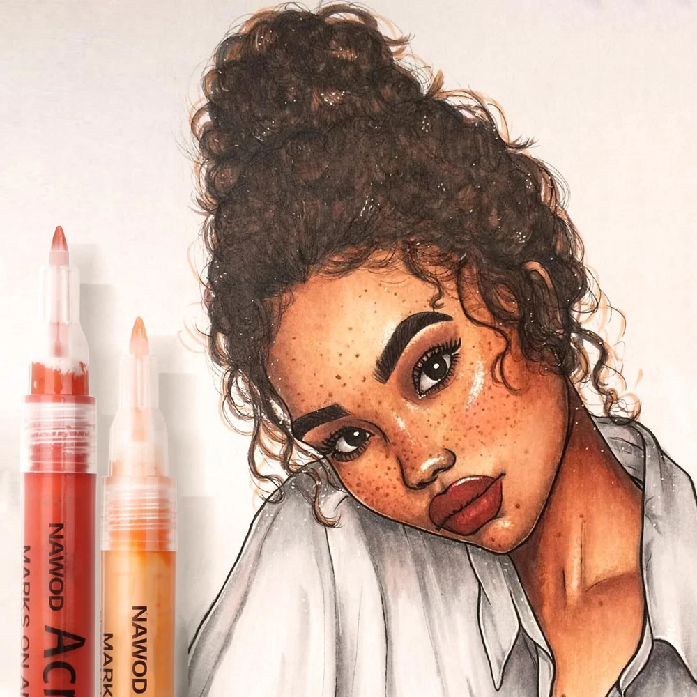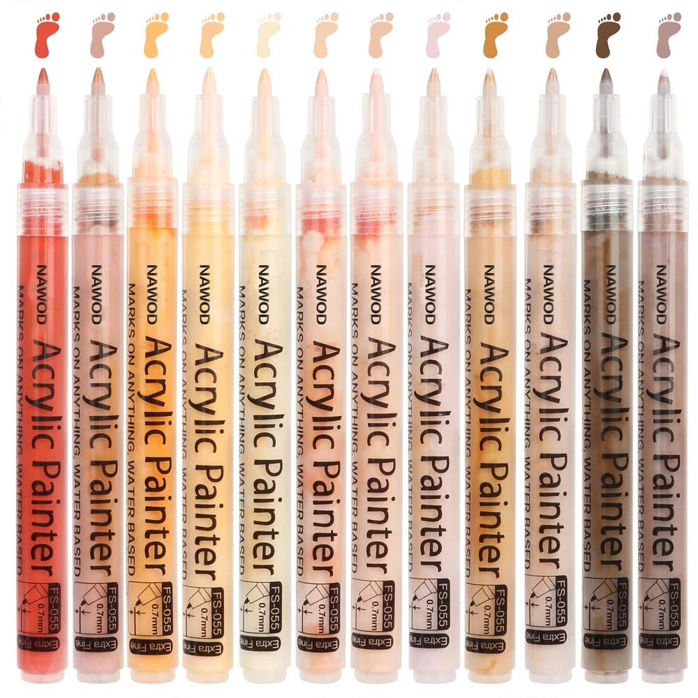 NAWOD Skin Tones Art Markers, Acrylic Paint Pens Set of 12 Skin Colors Paint ...