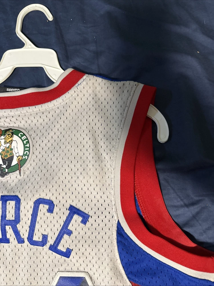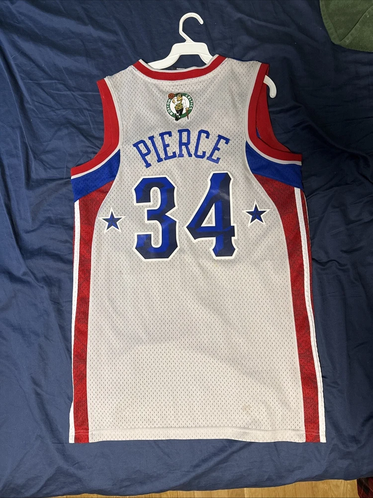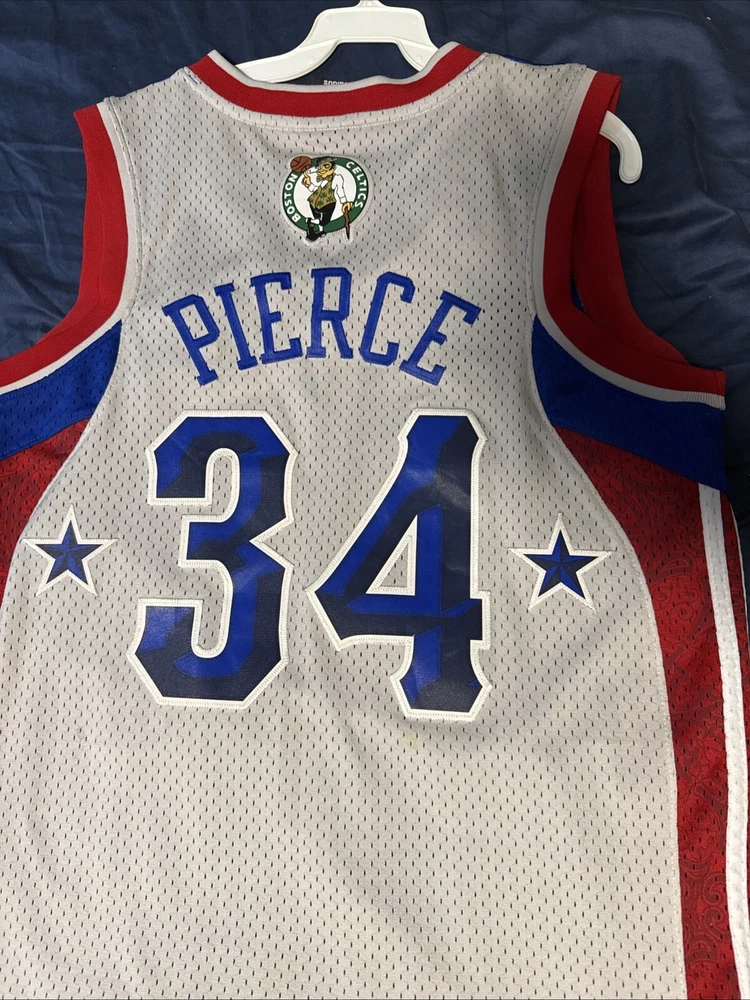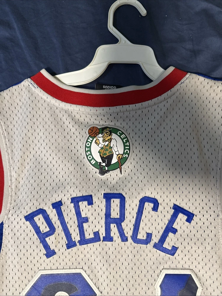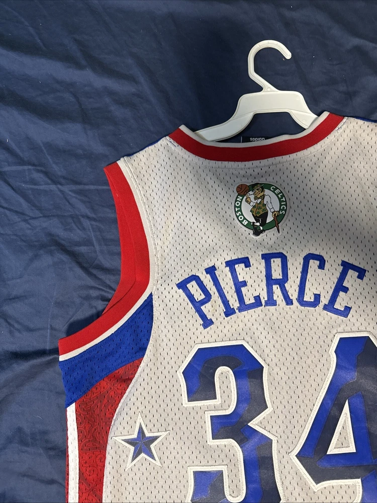 Immerse yourself in the spirit of the game with this authentic Adidas Boston Celtics Paul Pierce Jersey. A must-have for any fan, it celebrates the legacy of the NBA icon and the enduring glory of the Boston Celtics. This medium-sized jersey, sewn to perfection, features the vibrant multi-color design that's synonymous with the team's heritage. Crafted with care, this piece hails directly from Jersey, ensuring you get the genuine feel of the player's All-Star glory. It's a standout addition to any collection, whether you're hitting the court or displaying it proudly as a part of your sports memorabilia. Embrace the excitement of the NBA and the storied history of one of its most celebrated players. Please note the small stains on the back side of the jersey. The jersey is currently being professionally cleaned at this time and once cleaned will upload new photos.