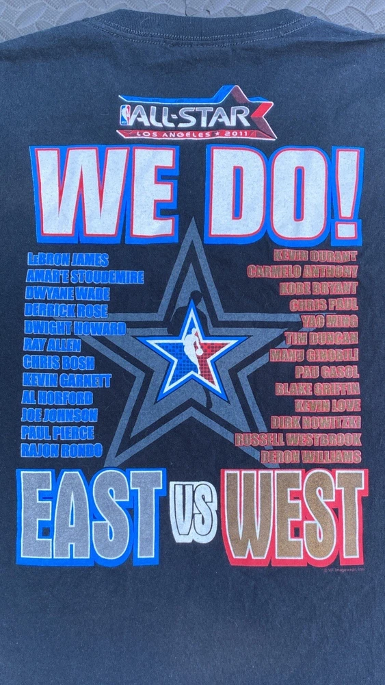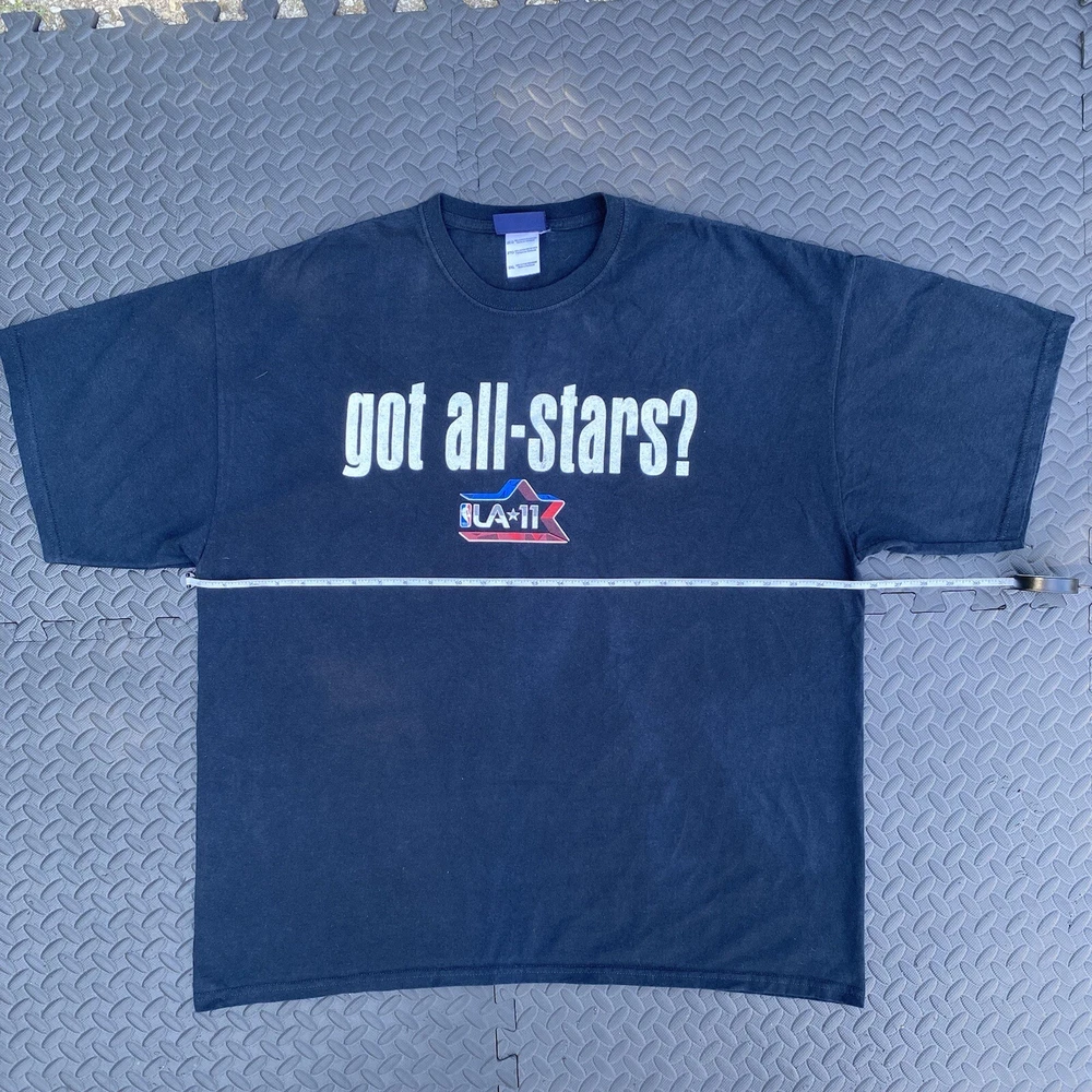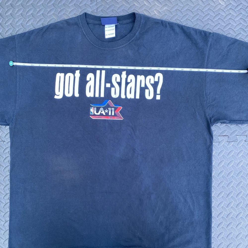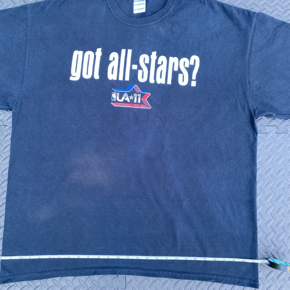 NBA 2011 All Star Game Los Angeles Got All Stars 2XL Shirt East Vs West Kobe. In-Hand Ready to Ship. No Major Flaws Seen. Please see pics above for closer look at product n measurements. Legit Seller. Measurements: (Each is a real close approximate) Pit to Pit: 25.5” Shoulders: 24” Sleeve Length: 8” Hem: 26.5” Length: 30.25”