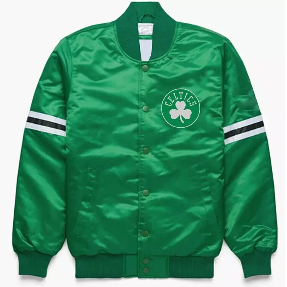 Details: Embroidered Logos Full-snap Locker loop Long sleeve Ribbed collar, cuffs and waistband Satin finish Sewn-on stripes Stand-up collar Two front pockets Material: Satin Machine wash gentle or dry clean. Tumble dry low, hang dry preferred.