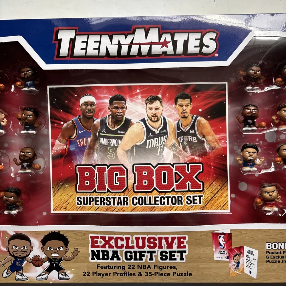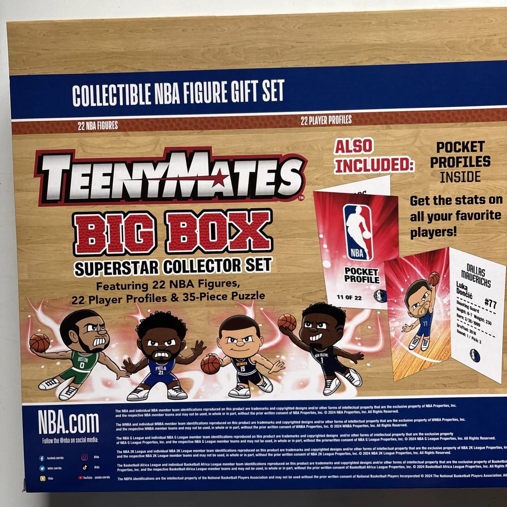Get your hands on this amazing NBA Collectables TeenyMates Big Box 22 Superstar Player BIG BOX Gift Set. This set includes action figures of 22 of the biggest stars in the NBA, from the Party Animal brand. These figures are officially licensed and perfect for any basketball fan. The set is a great gift for any collector or fan of the sport. It includes players from the National Basketball Association (NBA) and is perfect for adding to your collection. Don't miss out on this amazing opportunity to own a piece of NBA history.