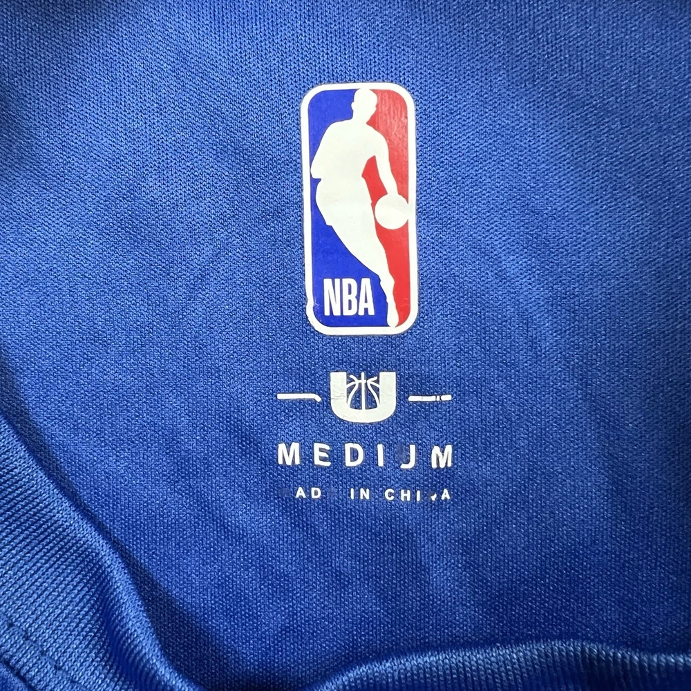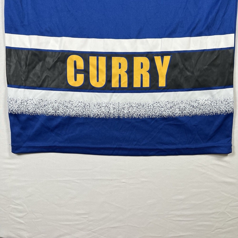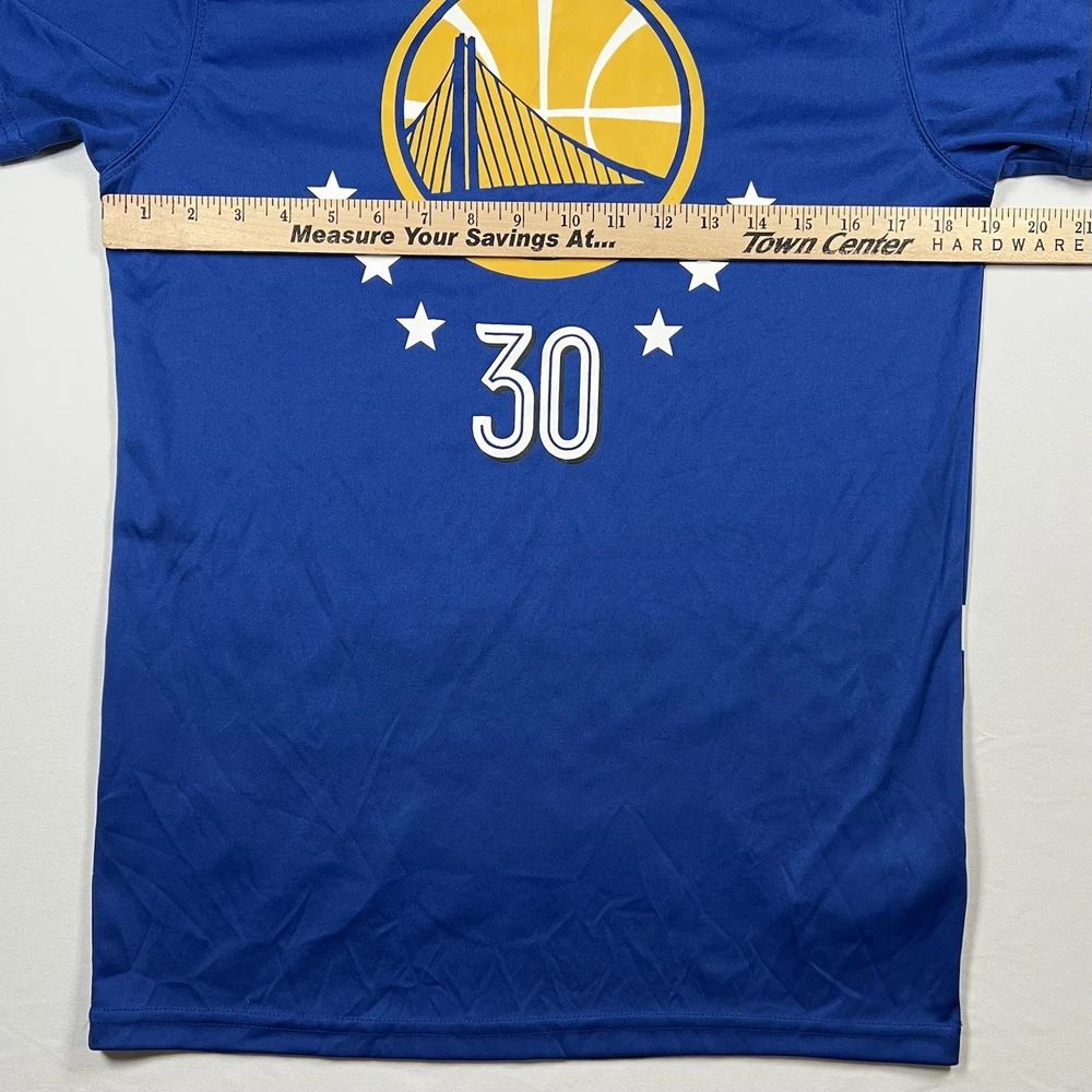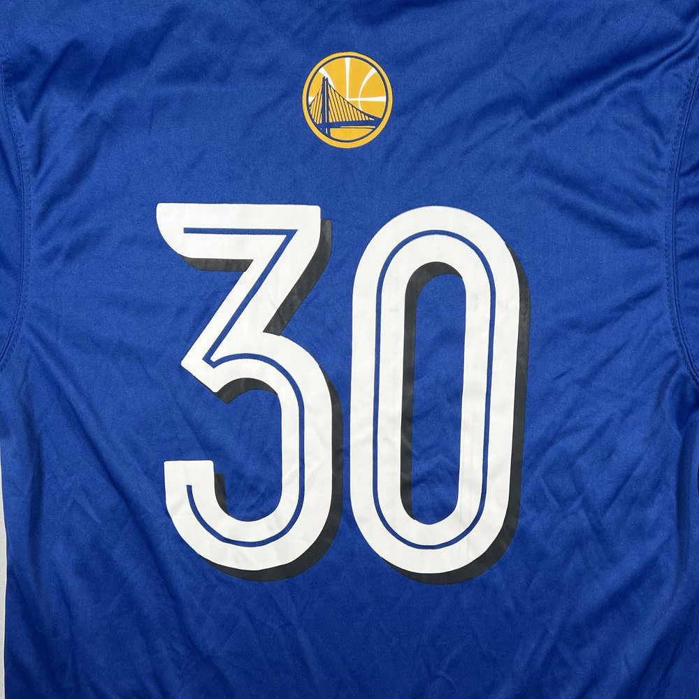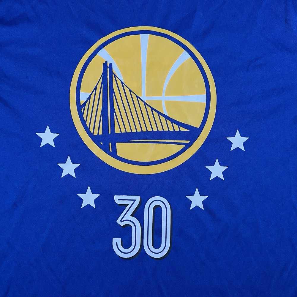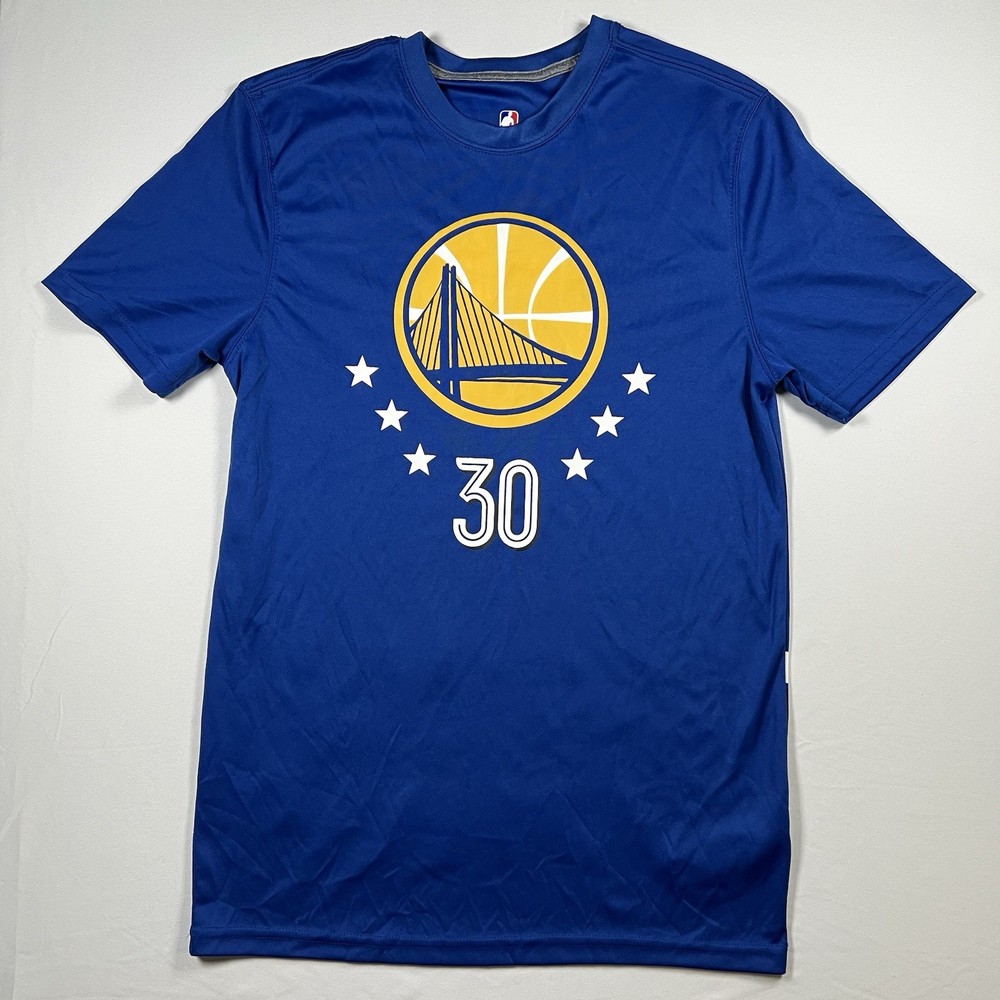 The product is an NBA officially licensed Golden State Warriors Stephen Curry #30 men's short sleeve jersey shirt in size M. This basketball jersey shirt features the team's signature blue and gold colors and is perfect for fans of the National Basketball Association. Made by the NBA brand, this shirt is ideal for fans looking to show support for their favorite team and player during the regular season. EUC