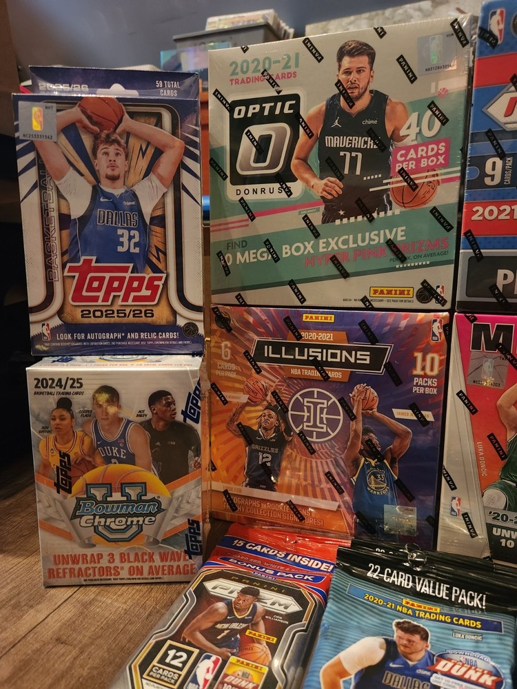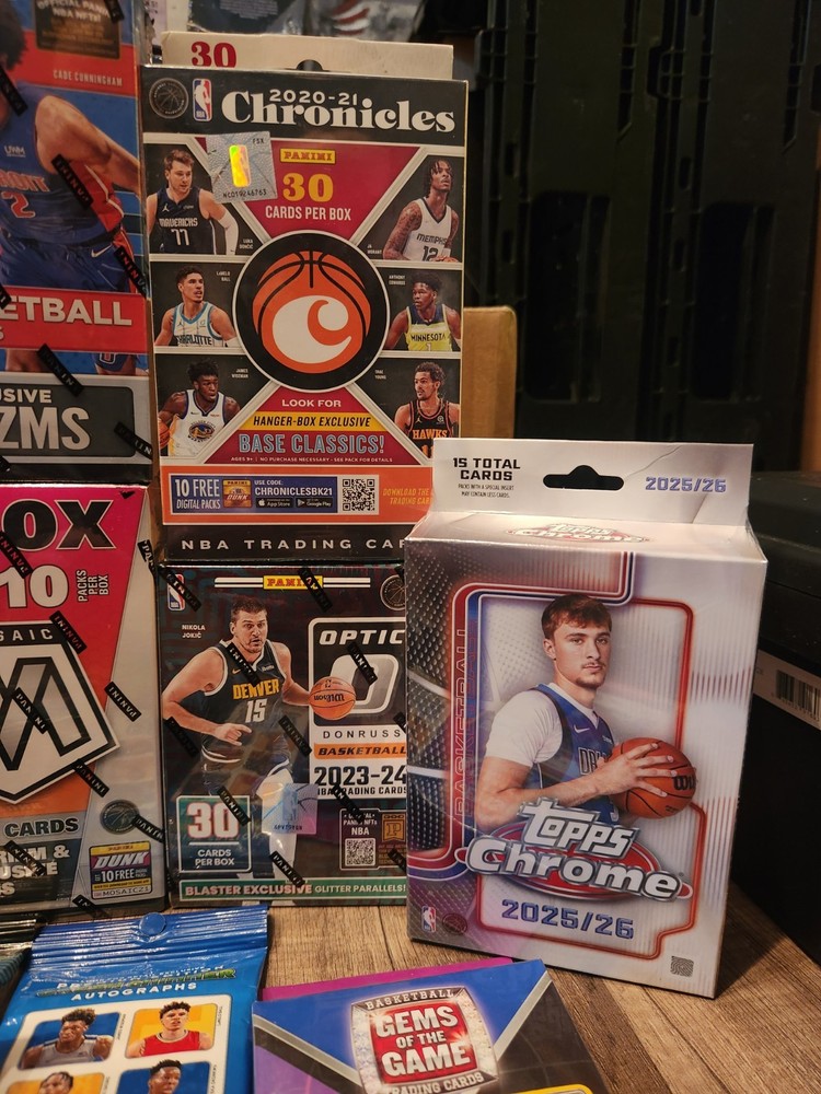 Listing is for the pictured NBA Lot of factory sealed items. All have been stored in a climate controlled and smoke free environment. Been in my possession since initial release/purchase of each item. All factory sealed but may contain standard blemishes that occur from the time they leave the production line and are distributed at their final location. A couple items contain price sticker residue. *READ**: this lot contains multiple years from the 2020-21 season(Lamelo, Anthony Edwards, Haliburton, etc. rookie year) to the 2025-26 season(Cooper Flagg rookie year). Please view the pictures carefully to notate the years. In all, there are 4 mega boxes, 2 blaster boxes, 3 hanger boxes, 6 cello packs, and a "Gems of the Game" mystery box containing one graded card. Thank you for viewing my listing.