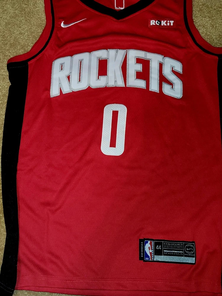 Elevate your basketball game with this stunning NBA Nike Houston Rockets Westbrook Vaporknit Jersey in size 44 replica! Show your support for the Houston Rockets and one of their star players, Russell Westbrook, with this high-quality jersey. In the iconic red color, it's perfect for any fan looking to represent their team. Crafted with precision and excellence by Nike, this jersey is made for men and boasts a sleek design that's perfect for regular season games. As part of the National Basketball Association (NBA) league, it's the ideal item for any basketball fan. Get your hands on this amazing jersey and show your support for the Houston Rockets today!