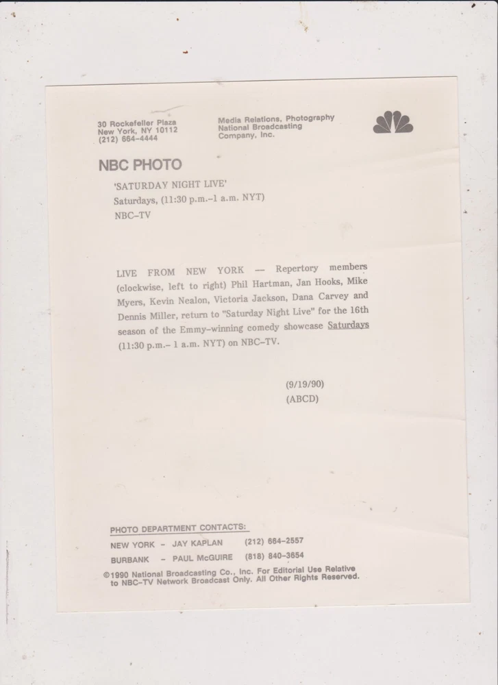NBC 7 BY 9 SEP 19,1990 SATURDAY NIGHT LIVE EPISODE PIC .FREE SHIPPING IN U.S