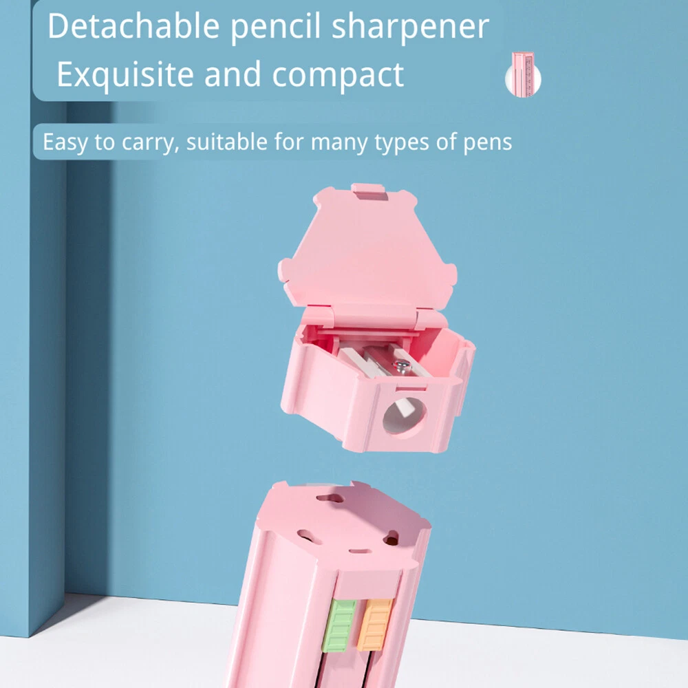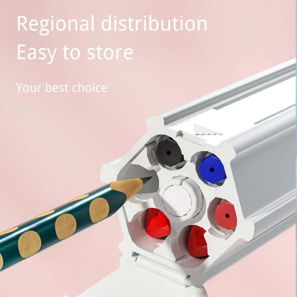 Features: 【Practical Design】The pencils can be removed from the 6-color buttons. The ruler and eraser are also easy to find in their fixed positions in the pencil case. And a detachable pencil sharpener at the bottom. It's fashionable and practical. 【Durable and Easy to Clean】This pencil case is made of high-quality ABS material, sturdy and durable, with smooth texture and easy to clean. The pen design inside the box helps prevent breakage of the pens. 【Lightweight & Portable】With its all-in-one design, it's convenient and lightweight without making other stationery dirty. It is a good choice for daily sketching. 【Perfect Gift】An original creative gift for girls, boys, classmates, students or friends as graduation gifts, birthday gifts or Christmas presents. 【Package Includes】You will receive a pencil case, which contains 6 pencils, an eraser, and a ruler to meet your child's basic learning needs for a day. Lightweight and portable, you can easily find suitable elements to improve learning efficiency. Specification: Color: Purple Pencil Box Size: 20x3cm Package Size: 22x4.5x3.8cm/8.6x1.7x1.4in Package Weight: 142g/5oz Note: Due to the different monitor and light effect, the actual color of the item might be slightly different from the color showed on the pictures. Thank you! Please allow 1-2cm measuring deviation due to manual measurement. Packing List: 1 x Pencil Box 1 x Ruler 1 x Eraser 6 x Pencil