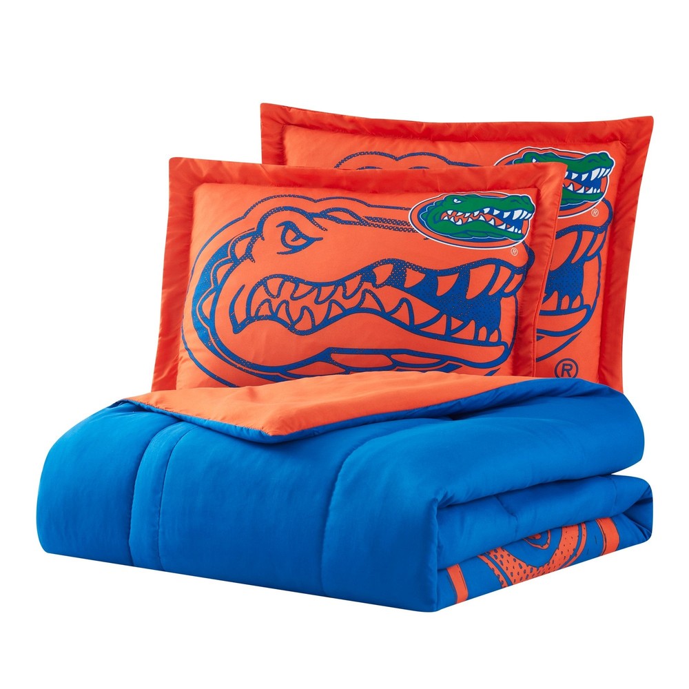 Show your team spirit with our Officially Licensed NCAA Florida Gators Comforter & Sham Set from Northwest. Made with ultra soft Polyester microfiber outer fabric and Polyester Down Alternative fill for the greatest comfort while you dream of your team's victory.The Comforter set print features team name, logo and helmet design Officially Licensed NCAA Product Twin/TXL Set includes 1 Comforter and 1 Pillow Sham Full/Queen set includes 1 Comforter and 2 Pillow Shams Box stitching design to avoid any shifting Luxury Polyester goose down-alternative comforter for year round use Machine wash gentle cycle with cold water Sun dry or low tumble dry 100-Percent Hypo-allergenic Dimensions: Twin/TXL: Comforter 64" x 92", Sham 24" x 30" Full/Queen: Comforter 86" x 86", Shams 24" x 30" Free Shipping Over $49.99* Details NCAA Florida Gators Officially Licenced Comforter & Sham set Product Description: Show your team spirit with our Officially Licensed NCAA Florida Gators Comforter & Sham Set from Northwest. Made with ultra soft Polyester microfiber outer fabric and Polyester Down Alternative fill for the greatest comfort while you dream of your team's victory. The Comforter set print features team name, logo and helmet design Officially Licensed NCAA Product Twin/TXL Set includes 1 Comforter and 1 Pillow Sham Full/Queen set includes 1 Comforter and 2 Pillow Shams Box stitching design to avoid any shifting Luxury Polyester goose down-alternative comforter for year round use Machine wash gentle cycle with cold water Sun dry or low tumble dry 100-Percent Hypo-allergenic Dimensions: Twin/TXLComforter 64" x 92", Sham 24" x 30" Full/QueenComforter 86" x 86", Shams 24" x 30"