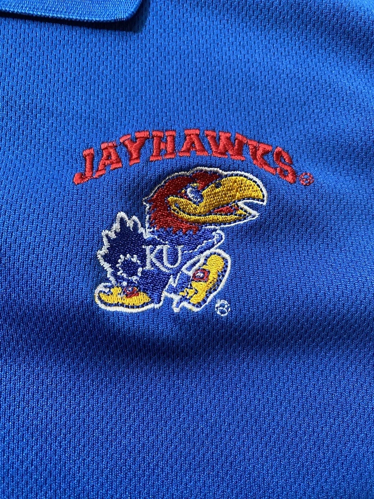 Show your love for the Kansas Jayhawks with this officially licensed NCAA Polo Shirt. This shirt is perfect for any football fan and is made from high-quality materials. The shirt features a bold red and blue design and is designed to fit men in size L. Wear this shirt to show your support for the team and make a statement wherever you go. It's perfect for game day or any casual occasion. This shirt is a must-have for any true Kansas Jayhawks fan.