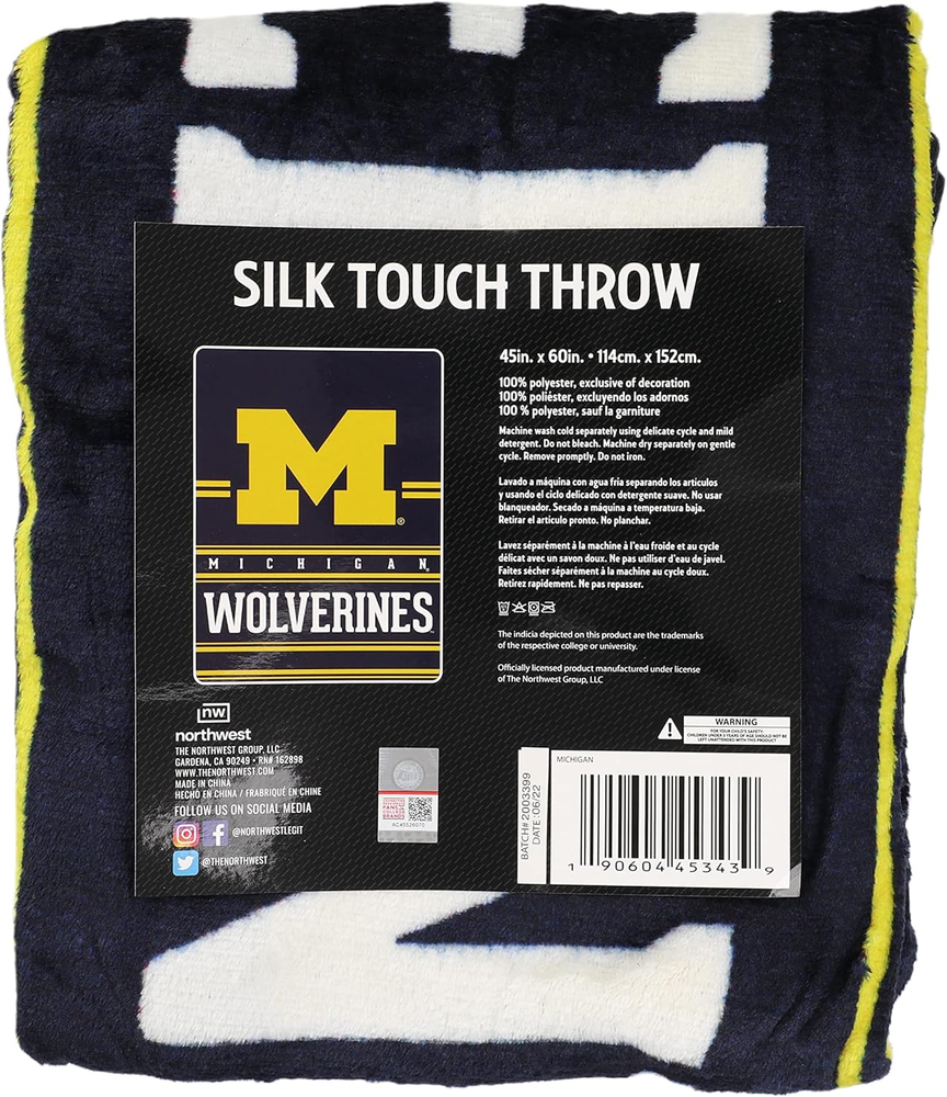 NCAA Michigan Wolverines 45x60 Silk Touch Throw Blanket 200 GSM Dual Vision Design