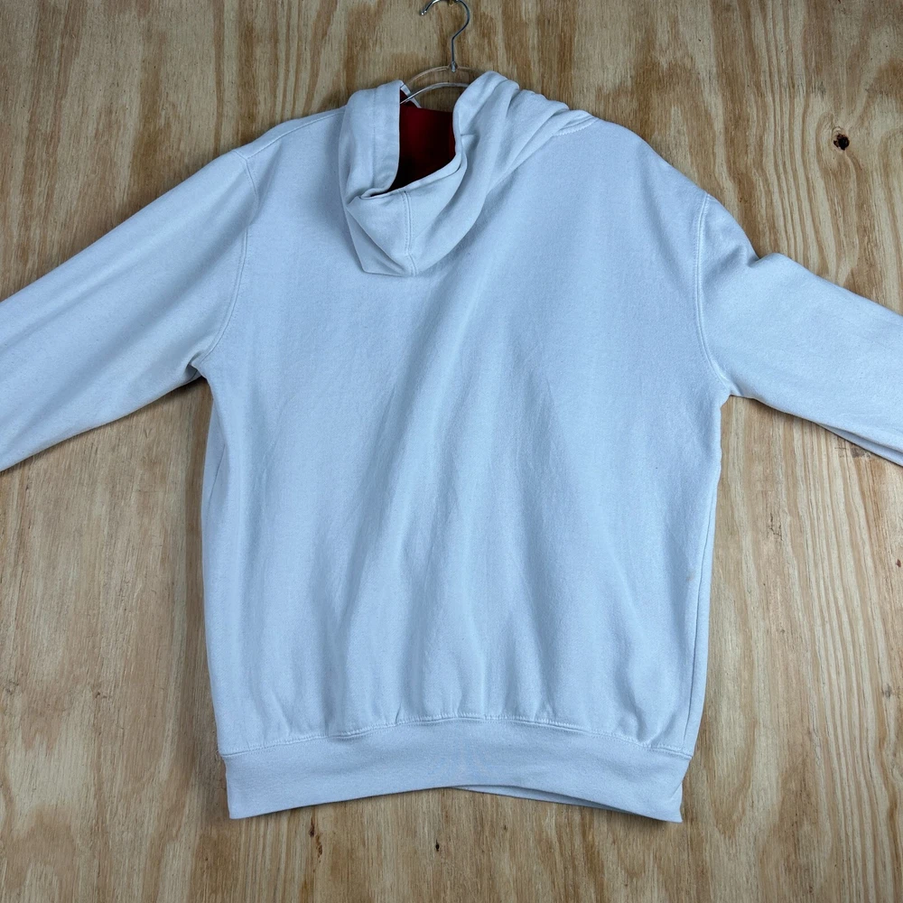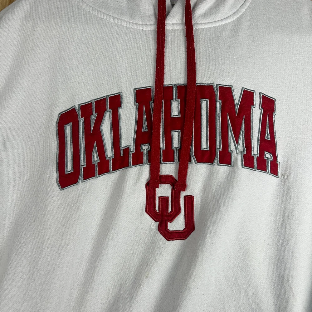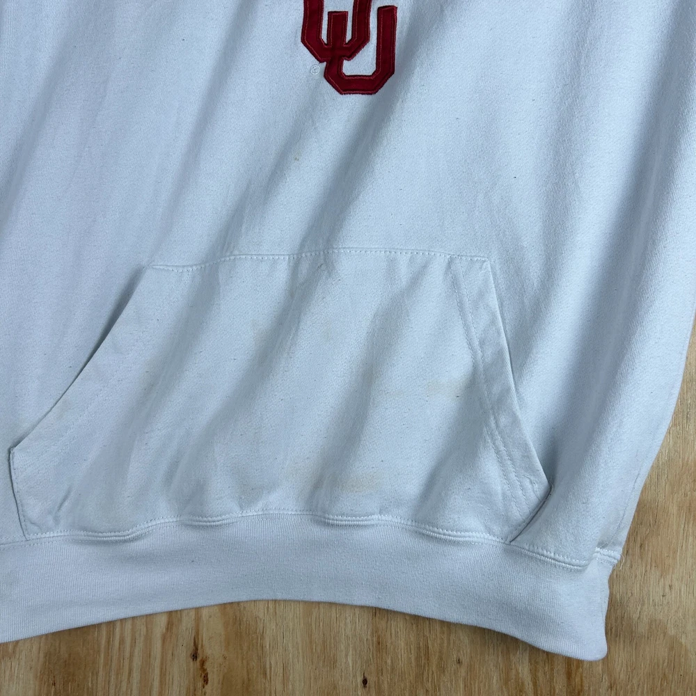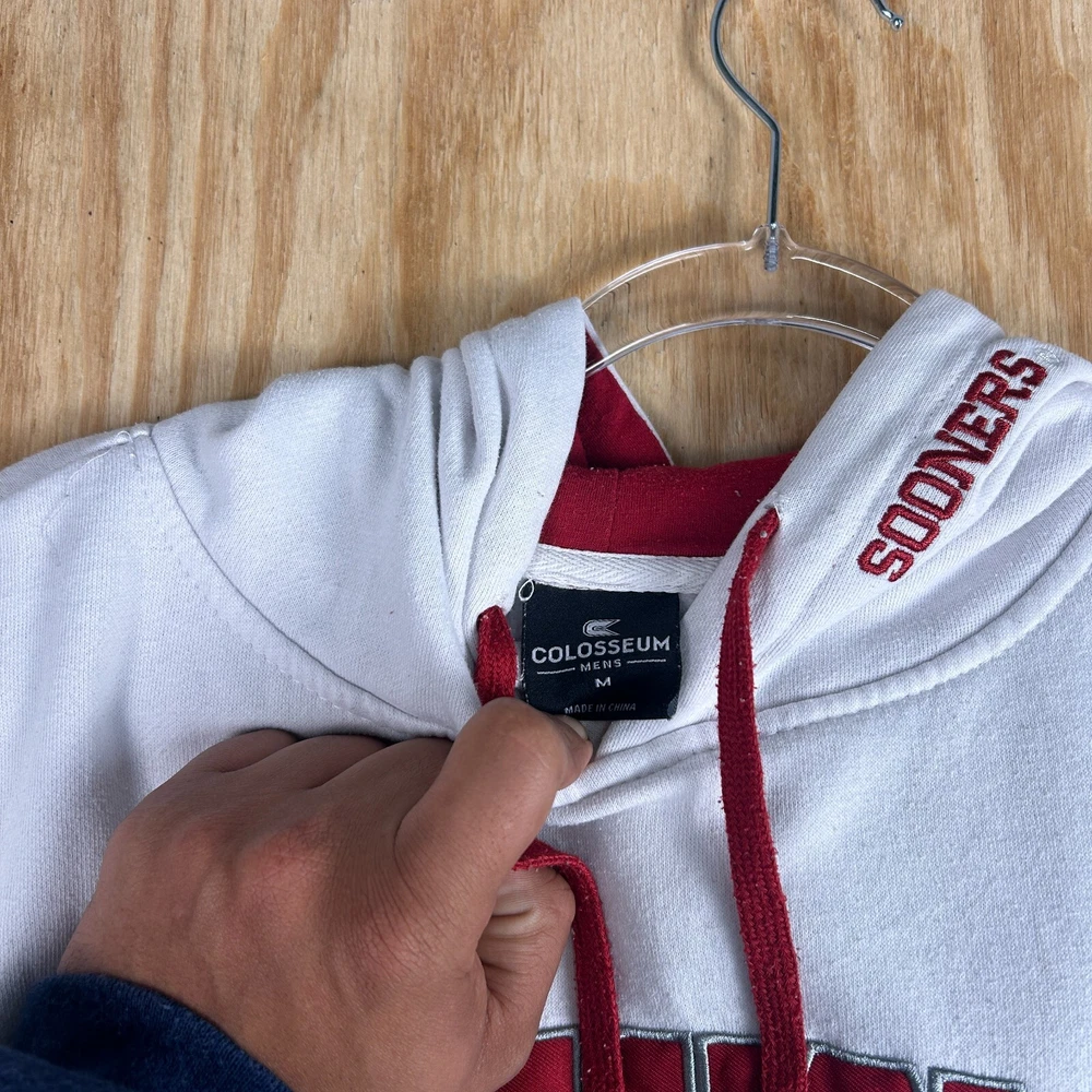 Show off your love for the Oklahoma Sooners with this NCAA licensed hooded sweatshirt from Colosseum Athletics. Perfect for football season, this white sweatshirt features an embroidered team logo and is made from comfortable material that will keep you warm during the games. Available in men's size M, this regular season sweatshirt is a must-have for any fan of the team. Whether you're at the game or just lounging around the house, this sweatshirt is sure to make a statement.