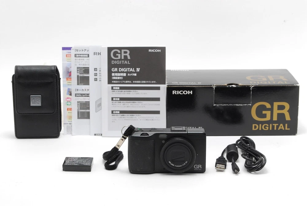 [NEAR MINT Box] Ricoh GR Digital IV 4 10.4MP Black Digital Camera From JAPAN Description Total Condition NEAR MINT Serial Number xf00101278 Appearance Tiny scuffs from normal use. * Please check photos. Optics Very beautiful condition. There is no fungus. There is no haze. There is no scratches. There is a few dust. No problem in the shooting. Functional It works properly. English setting. Bundled Items Box Battery Charger Case Strap Instruction All you can see on the picture will be included in a set of a package. Please refer to the pictures for more details. Above condition is based on my own opinion. Please check the pictures and don't hesitate to ask any questions about the item! Thank you. Payment Payment is due within 3 days of the auction end. We will ship the item 3 business days after your payment clears. Shipping We will send your goods by FedEx International Priority or EMS. We will provide you with a tracking number. Please bid with confidence. We only ship to addresses registered with Ebay. Please note that we cannot ship to addresses that are not registered with Ebay. We ship Monday through Friday Japan time. On Sundays (Japan time), pickups are closed and shipping will be arranged the next day. Returns No Return Accepted. International Buyers Please Note: Import duties, taxes, and charges are not included in the item price or shipping cost. These charges are the buyer's responsibility. Please check with your country's customs office to determine what these additional costs will be prior to bidding or buying.