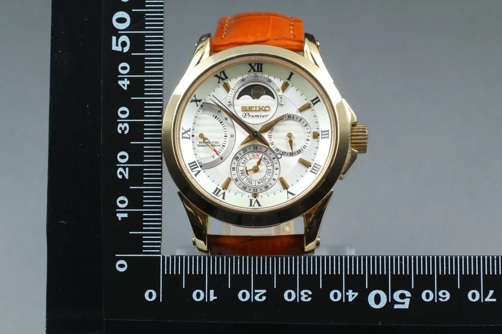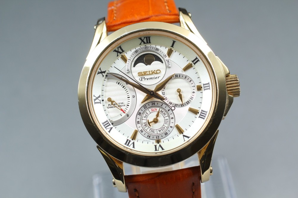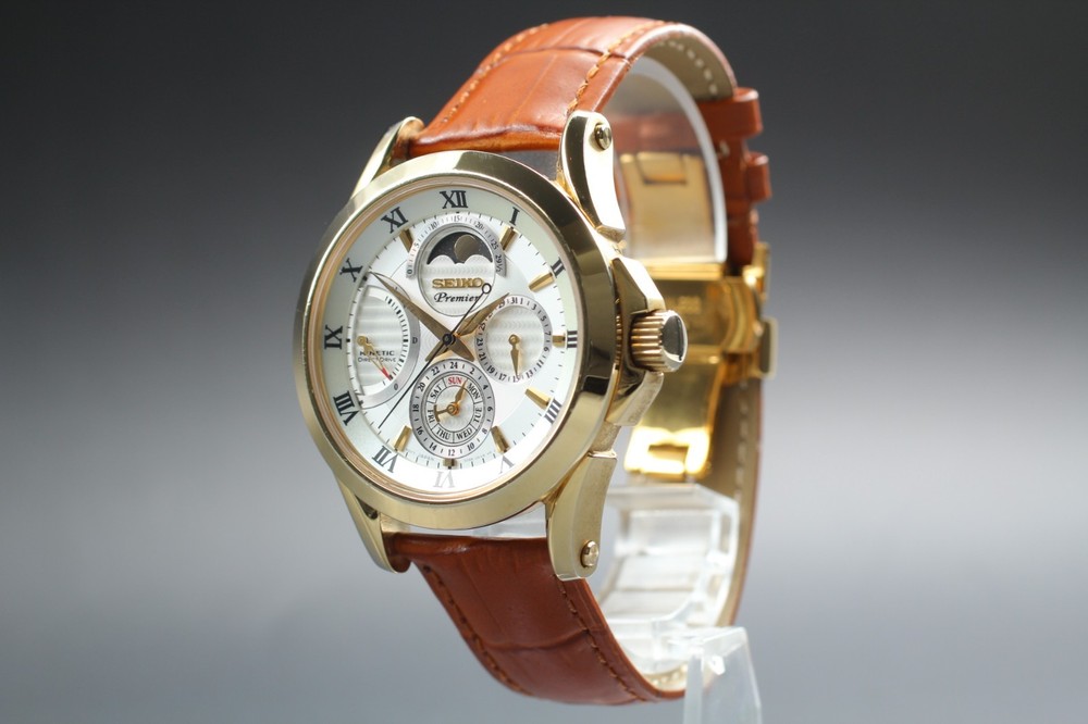 [NEAR MINT] Seiko Premier 5D88-0AA0 Kinetic Gold Chronograph Moonphase Men Watch Description Following recent updates to eBay’s policies, import duties for items shipped to the United States are now included in the item price. Please note that, in our shop, the shipping fee is considered to cover the import duty portion. Therefore, customers in the United States will not be required to pay any additional customs duties at the time of delivery. ■ Condition Near Mint Pre-owned, almost no signs of use. ■ Model Number 5D88-0AA0 ■ Serial Number 420074 ■ Appearance [Case] Beautiful condition . There is a very thin stain on the watch glass. There are some light scratches and some peeling of the plating on the stainless steel parts. There is no dent. [Belt] Beautiful condition . There is no scratches. The belt is a compatible item. ■ Belt Size Free Size ■ Functional It works properly. ■ Bundled Items All you can see on the picture will be included in a set of a package. Please refer to the pictures for more details. Please check the pictures and don't hesitate to ask any questions about the item ! Thank you. Payment We accept Pay Pal or Visa , Master Card , American Express and Discover . Payment is due within 5 days of the auction end. We will ship the item 3 business days after your payment clears. Shipping I send a product by Fed Ex or EMS or DHL I attach the tracking number. Please bid it without worrying. Shipping is only available to the address registered in Paypal. Please note that any address not registered in Paypal is not acceptable to ship. Shipping is available from Monday to Friday. Weekends are not available because post office is closed. Returns Unconditional Return Policy Customer service and satisfaction are very important to us. I have an unconditional return policy if notified within 30 of the receipt of the item. All returned items must be the original condition. All return requests must be made within 30 days of the receipt of the item. Please contact me first for return before you ship it back to me. The postage of the returned goods is a buyer burden. International Buyers Please Note: Import duties, taxes, and charges are not included in the item price or shipping cost. These charges are the buyer's responsibility. Please check with your country's customs office to determine what these additional costs will be prior to bidding or buying.