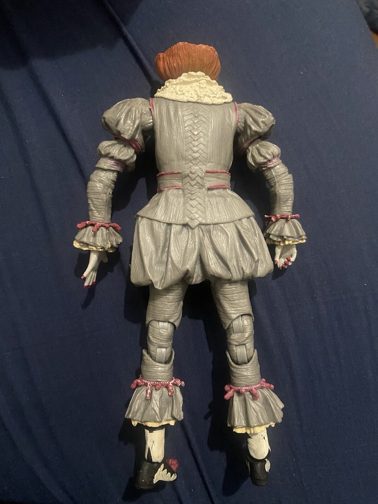 The NECA Bloody Ultimate Pennywise 7 inch Action Figure is a highly detailed collectible toy based on the horror movie "It". The figure features a blue color scheme and is made of plastic material. It comes with clothes and is boxed for display. The action figure is in the 1:12 scale and is an original licensed reproduction. The featured person/artist is Heart. The item length is 9.25 inches, the item height is 7 inches, and the item width is 6.3 inches. The action figure is suitable for age levels of 17 years and up and is a great addition to any collection of TV, movie, and video game action figures.