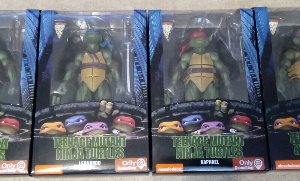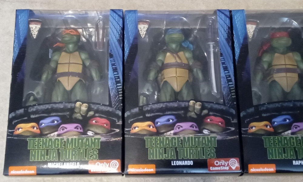 NECA Action Figure TMNT Game Stop Exclusive Set Michelangelo / Leonardo / Raphael / Donatello New in Box / Minor Box Wear SHIPPING: USA ONLY (Lower 48 States Only)