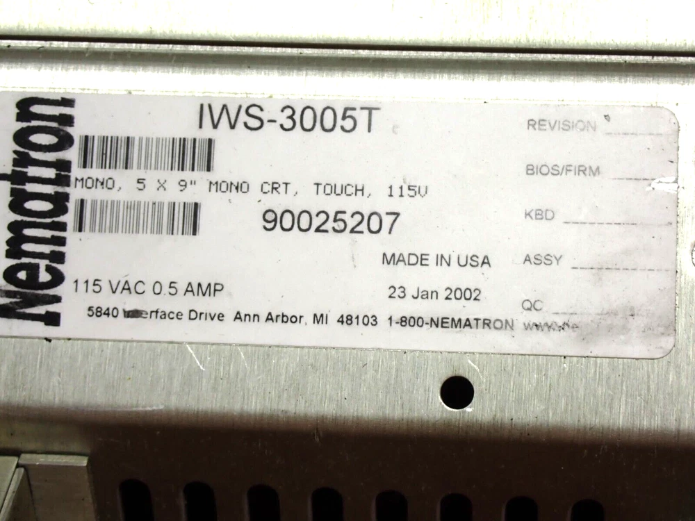 OFFERED IS THIS USED NEMATRON IWS-3025T INDUSTRIAL COMPUTER WORKSTATION THIS IS UN-TESTED THIS CAME FROM AN ELECTROLUX PARTS CRIB A FEW YEARS AGO THIS CAN BE RETURNED IF YOU ARENT SATISFIED WE OFFER FAST NEXT DAY SHIPPING VIA USPS, UPS OR FED-EX PLEASE ASK ANY NEEDED QUESTIONS