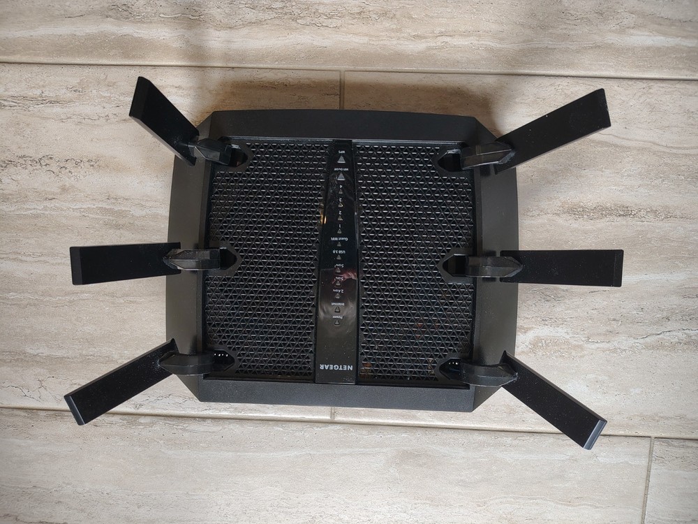 MPN: R7960P Maximum Wireless Data Rate: 1300 Mbps Brand: NETGEAR Model: X6S Item Width: 9 inches Item Length: 11.5 inches Color: Black Type: Router Seller Notes: “Very good...used lightly, clean. All ports in good shape. we never had any problems with it.” Maximum LAN Data Rate: 3.525 Item Height: 2.4 inches Number of LAN Ports: 4 Features: Beamforming, VPN Capabilities, For Gaming, Tri-Band Country of Origin: Vietnam