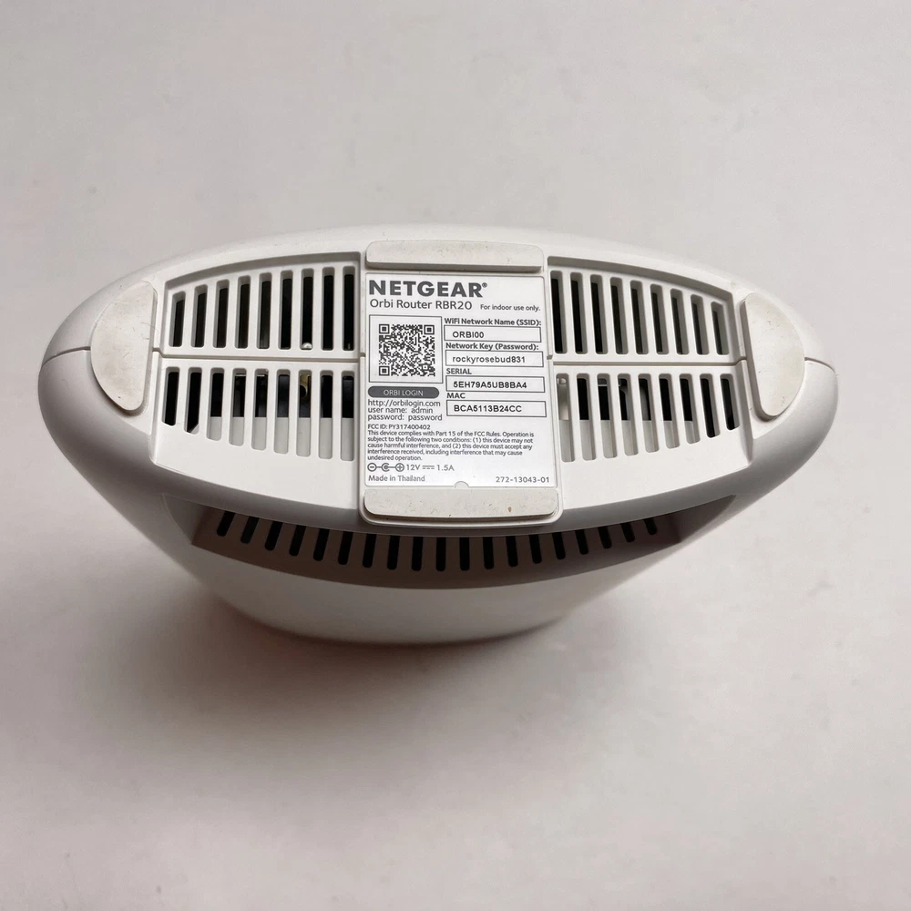 Number of LAN Ports:1Connectivity:Wired-Ethernet (RJ-45), Wireless-Wi-Fi 802.11a, Wireless-Wi-Fi 802.11ac, Wireless-Wi-Fi 802.11b, Wireless-Wi-Fi 802.11g, Wireless, Wireless (Wi-Fi)Ports:Ethernet (RJ-45)Type:RouterFeatures:Tri-BandColor:WhiteModel:Orbi Router RBR20UPC:Does not applyBrand:NETGEARMaximum LAN Data Rate:1000 MbpsSeller Notes:“In good working condition. Photos show the actual items you will receive.”Maximum Wireless Data Rate:2200 Mbpsgtin13:Does not apply