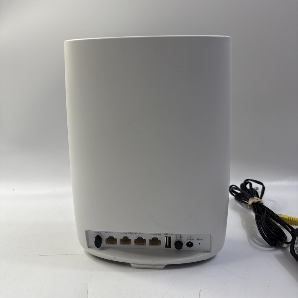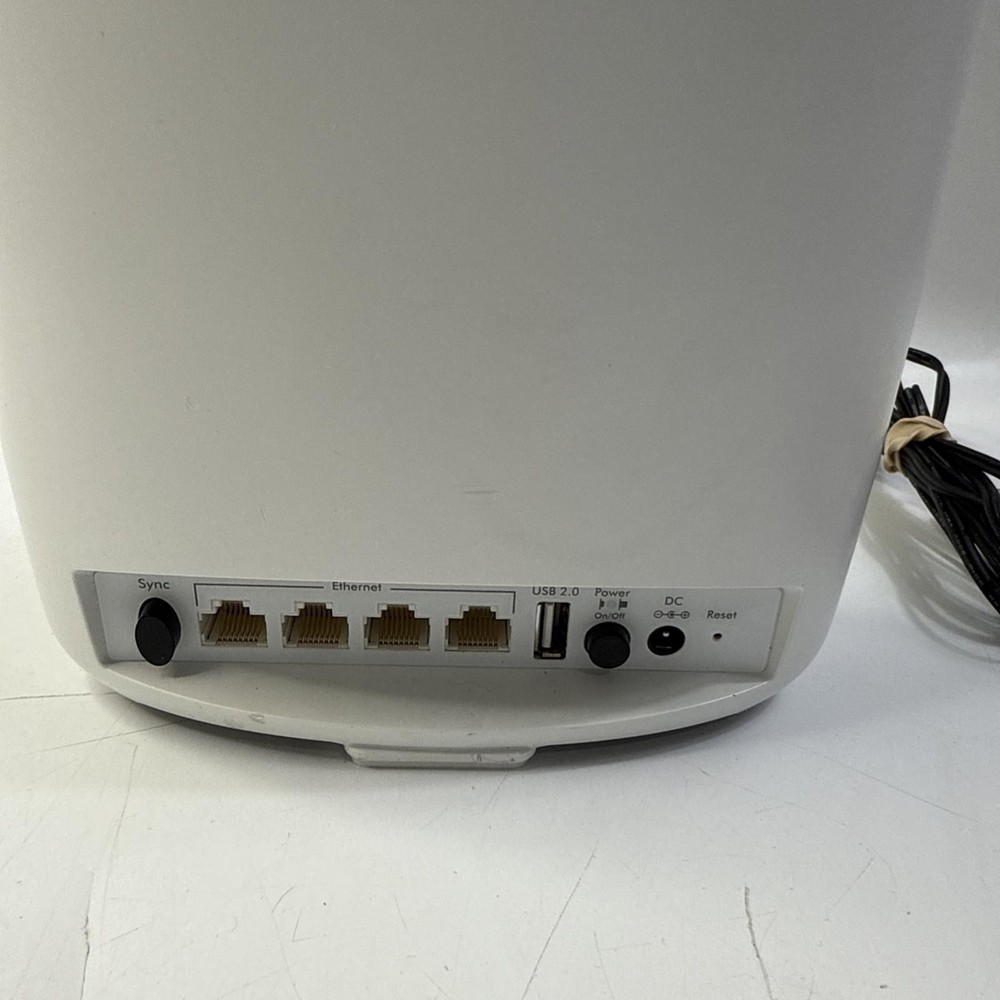 The NETGEAR Orbi RBS50 Satellite is a tri-band AC3000 WiFi extender in white color. With a maximum wireless data rate of 3000 Mbps and four LAN ports, it offers fast and reliable connectivity. The extender features Beamforming technology, VPN capabilities, and tri-band support, making it ideal for expanding and enhancing your home network. The model is RBS50 and it includes various connectivity options such as wireless Wi-Fi 802.11a/b/n/ac/g and wired Ethernet (RJ-45) ports. Listing and template services provided by inkFrog