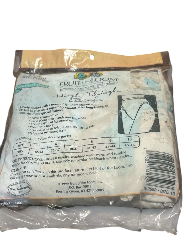 NEW 1990 FRUIT OF THE LOOM Feminine Style HIGH THIGH BRIEFS Size 10 USA (3)