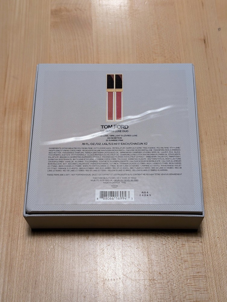 ⭐ ⭐ NEW 2 x Tom Ford Gloss Luxe Lip Gloss - #08 INHIBITION & #22 SUNRISE PINK ⭐ Condition: Brand New, Fresh, & 100% Authentic! Brand: Tom Ford Product Line/Type: Gloss Luxe Lip Gloss Comes With: 1 x Gift Box 1 x #08 INHIBITION Gloss Luxe Lip Gloss (FULL SIZE - 0.19oz / 5.5mL) 1 x #22 SUNRISE PINK Gloss Luxe Lip Gloss (FULL SIZE - 0.19oz / 5.5mL) I Ship Fast! If You Have Any Questions, Please Feel Free To Reach Out! Thanks For Stopping By!