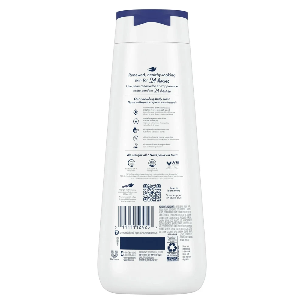 OUR ITEM SHIPPED FROM US WAREHOUSE Product details Just as everyone's skin is different, skin dryness can appear differently for everyone. From mild, occasionally dry skin driven by ageing, weather fluctuations or just life! To dry patches and skin dryness . No matter how dry your skin may look or feel, Dove has got you covered. Dove Deep Moisture body wash transforms even the driest skin in just one shower leaving you with softer smoother skin. Why it works: Specially formulated to transform even the driest skin, this body wash for dry skin is made with naturally-derived cleansers and plant-based moisturizers . Its moisturizing formula is infused with Microbiome Nutrient Serum, a unique blend of prebiotics that nourishes your skin and its microbiome – your skin's living protective layer – and helps build and strengthen its natural moisture barrier. By helping to moisturize skin, this hydrating body wash not only makes your skin feel instantly softer, it also helps to nurture your skin for long-lasting nourishment. Benefits: Dove cares for all. 24HR RENEWING MICROMOISTURE: Dove Deep Moisture Body Wash gently cleanses and deeply moisturizes the skin, leaving it renewed and healthy-looking for 24 hours FOR SOFT, SMOOTH SKIN: Our deeply moisturizing body wash, formulated with millions of MicroMoisture droplets, leaves skin soft as silk NOURISHES THE DRIEST SKIN: Dove Deep Moisture Body Wash for dry skin actively regenerates skin’s natural moisture and deeply nourishes the driest skin, leaving it soft and hydrated HOW TO USE: Squeeze a generous amount of Dove Deep Moisture Body Wash into your palms. Massage the moisturizing body wash onto your skin, taking a moment to enjoy the rich lather before rinsing off #1 DERMATOLOGIST-RECOMMENDED BODY WASH BRAND: From the #1 dermatologist-recommended body wash brand, this body wash, made with plant-based moisturizers, gently cleanses your skin and nourishes its microbiome THOUGHTFULLY MADE: This sulfate-free body wash is vegan and Dove is PETA approved, meaning we do not test on animals, anywhere in the world. Our body wash is packaged in 100% recycled plastic bottles, so you can feel good about switching to Dove 20 oz Dove Body Wash At a glance Brand Dove Weight 2.22 lb Count 1 Form Liquid Body wash & shower gel type Body Wash Features Daily Use, Softening,