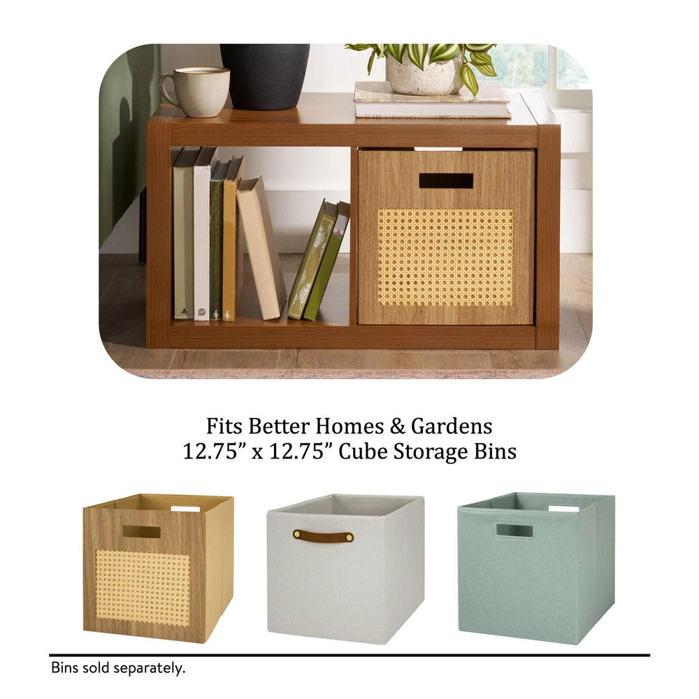 Add function and style to your home with the Better Homes & Gardens 2-Cube Storage Organizer. Available in multiple finishes, including both solid and wood grain options, this cube organizer features two 13" x 15" x 13" compartments, the perfect size to display books, collectibles, photos, artwork, storage bins and baskets. An open back design makes it easy to manage cords and cables. This sturdy bookcase can stand vertically or horizontally to best suit your needs and space. The top panel supports up to 148 lbs when vertical and 44 lbs when horizontal. Combine it with other Better Homes & Gardens Cube Organizers and Cube Storage Bins (sold separately) to create a complete, customized storage and display system. Easy to assemble, the Better Homes & Gardens 2-Cube Storage Organizer is perfect for your office, living room, den, playroom and more. Features two 13" x 15" x 13" compartments Modern, open back design for easy cord management Compatible with Better Homes & Gardens Cube Storage Bins (sold separately) Versatile design allows for vertical or horizontal placement Top panel can support up to 148 lbs when vertical or 44 lbs when horizontal; each cube supports up to 22 lbs Can be combined with other Better Homes & Gardens Cube Storage Organizers (sold separately) Materials: MDF, particle board Easy to assemble with included instructions (no additional tools required) Package size: 37.01" x 6.38" x 18.11" (25.21 lbs) On Feb 4, 2025 at 00:24:16 PST, seller added the following information: