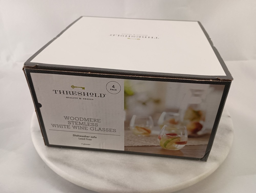 Elevate your wine-drinking experience with this set of four Woodmere Stemless White Wine Glasses from Threshold. Designed with a modern stemless style, these glasses are perfect for any adult occasion. The clear glass material allows you to fully appreciate the color and texture of your favorite white wines. Each glass holds up to 16 oz. of liquid and is made of high-quality glass material. The set includes four glasses, making it perfect for sharing with friends or family. With a brand name like Threshold, you can trust that you're getting a quality product. Thank you for visiting my listing today and thank you for your interest in this item! My goal is to have a pleasant transaction resulting in a satisfied customer. I hope any transaction between us leaves you with a feeling of confidence knowing you can trust me and the items I offer here. *Most if not all my listings are set to accept offers. Feel free to send an offer and I will be happy to consider it!! *Please contact me with any questions or concerns and I will be happy to help. *Always examine the photos carefully, and if in doubt, email me with any questions you may have. *Please note that condition statements are offered as a guide only. They will always be somewhat subjective and reflect our opinion, which may not necessarily agree with someone else's opinion. PLEASE READ: I aim to please and I want my buyers to have a positive transaction with me. If you have questions, concerns, or special requests related to any of my items I hope you will contact me so we can work them out to your satisfaction. I sell my items to give you a great item at a decent price while making a little profit at the same time. If you feel the item you are interested in is too pricey do not hesitate to send me a fair offer and I will consider it. My goal is to satisfy your needs and mine so both parties can benefit. SHIPPING: If you prefer a different shipping method or company please contact me and I will do all I can to make that happen. If you have concerns or requests about the packaging of your item contact me and I will do all I can to accommodate them. Shipping costs are based on location in each state or country, the costs always differ. After I have received your payment I will ship your item out within 3 business days or less excluding weekends and holidays. BEFORE PURCHASING & BIDDING: **Please see all the pictures. I do not have great photography skills but I try to get the most accurate photos I can. If you are unsure about something you see in a photo contact me so I can do what I am able to answer your concern about the item. **I cannot stress enough that if you have any questions or concerns please contact me before purchasing and bidding. Communication can solve so much. **As a customer myself, I understand the meaning of customer satisfaction and my goal is to have nothing but satisfied customers. If you are not unsatisfied with your purchase I ask that you please contact me so I can take care of your issue. My goal is for you to be 100% satisfied. INTERNATIONAL BUYERS WELCOMED - PLEASE NOTE: I welcome International buyers! Please be aware that any custom/duties/taxes that the parcel might incur once it is out of the USA are the responsibility of the buyer. Please check with your country's customs office to determine what these additional costs will be prior to bidding or buying. Please refer to the eBay Site Map for more information if needed.