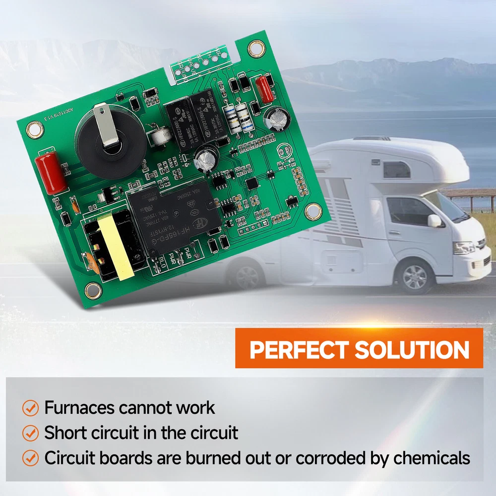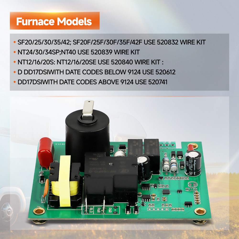 NEW 520820 Furnace Heater Fan Control Ignition Circuit Board Replace Suburban RV Part Number:520871 520814 520820 33550L AP4896608 Feature: 【Safety Protection】1. Detect the flame when it is powered on 2. Detecte the temperature, flame, and airflow during work3. Enter the locking protection and manually reset it when abnormal flame extinguishing is detected. 【OEM Standard】Circuit board RV Ignition Control Board Kit adopts Germany SMT technology to ensure more stable and reliable.Through multiple processes of quality inspection before leaving The atwood furnace parts factory, to ensure The product quality. 【Quality Assured】1 Year Unlimited--We extremely value your satisfaction and strive to provide you good shopping experience. Any product question, please feel free to contact us at any time. Fitment: Compatible with: SF20/25/30/35/42; SF20F/25F/30F/35F/42F USE 520832 WIRE KIT ; NT24/30/34SP; NT40 USE 520839 WIRE KIT ; NT12/16/20S; NT12/16/20SE USE 520840 WIRE KIT ; DD17DSI WITH DATE CODES BELOW 9124 USE 520612 ; DD17DSI WITH DATE CODES ABOVE 9124 USE 520741 On Nov 8, 2025 at 22:35:00 PST, seller added the following information: