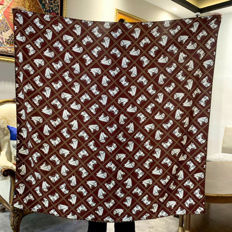 $ 25.2470% Cashmere & 30% Silk Carriage Print Scarf Hand Rolled Square Shawl 53" Beige