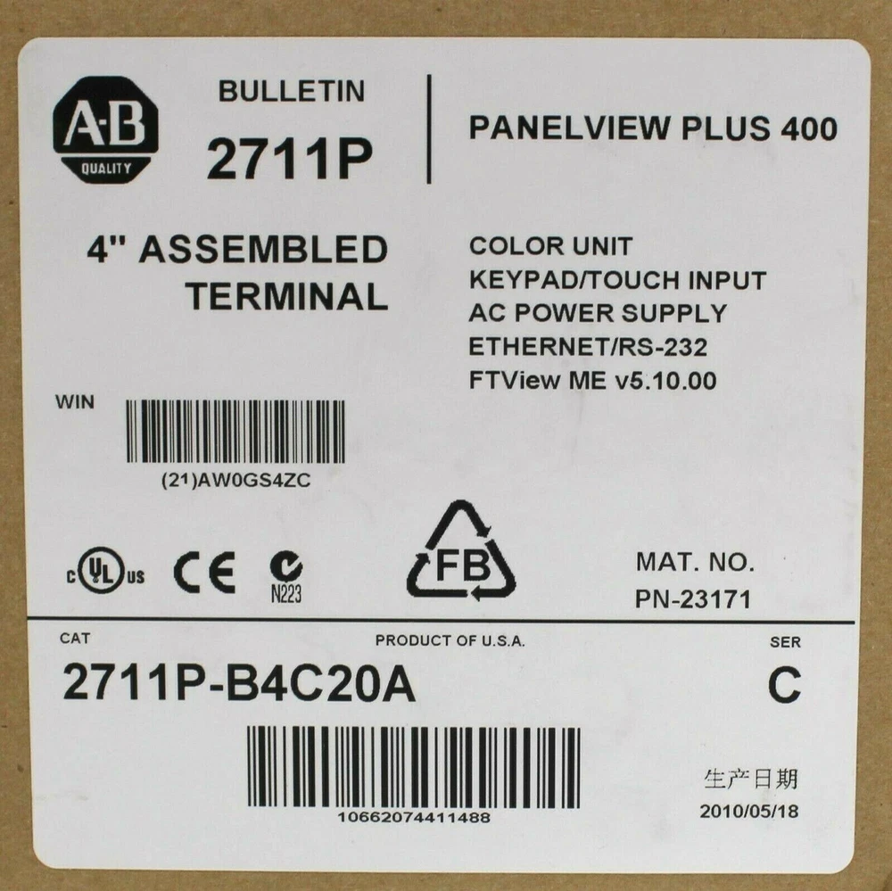 NEW Allen Bradley 2711P-B4C20A PanelView Plus 400 4" Assembled Terminal On Apr 22, 2025 at 20:40:30 PDT, seller added the following information: On Jan 23, 2026 at 12:29:20 PST, seller added the following information: