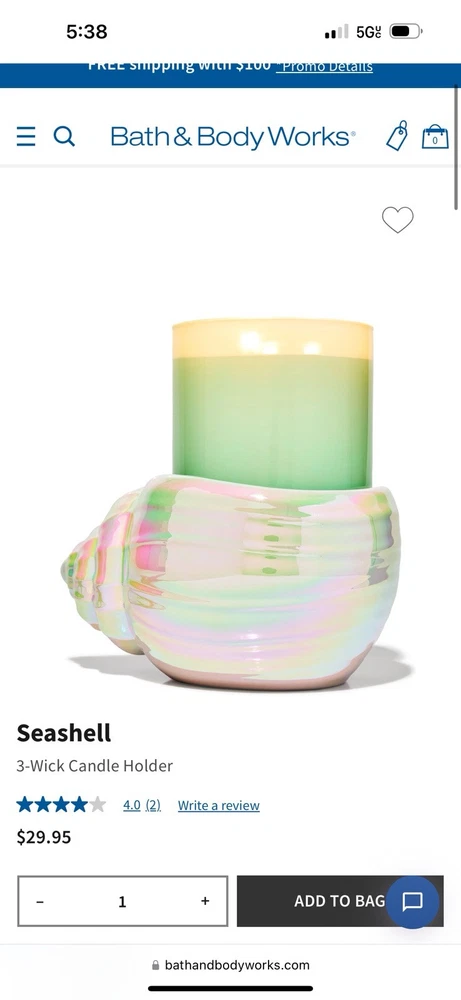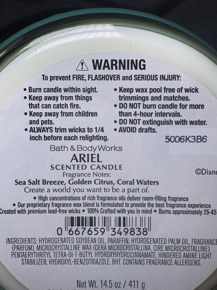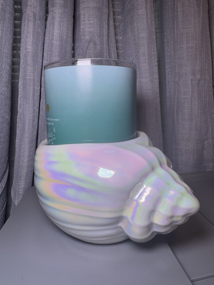 FREE 10 oz DISNEY PRINCESS BODY WASH- BRAND NEW -YOU PICK!! Belle, Cinderella, Tiana, Moana, jasmine, or Ariel (message me as soon as you can after purchase !! I drop off USPS same / next day7 days a week !! $16.95 value Brand new, fun, Pearlescent Bath and Body Works Sea Shell candle holder. Platform is sized for a 3 wick candle and anything smaller!! Holder Bundles with the Disney limited edition Ariel 3 Wick soy wax blend candle from the exclusive Disney collection at B&BW 💙ARIEL CANDLE SCENT:: Sea salt breeze, golden citrus, coral waters Sea Shell 🐚 Candle Holder Measures 4.7" D x 4.1" H