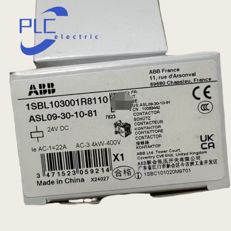 Catalog Description: A SL09-30-10-81 24VDC Contactor Long Description: 1.ASL09 contactors are mainly used for controlling 3-phase motors and generally for controlling power circuits up to 690 V AC or 220 V DC. 2.They are mainly used for controlling 3-phase motors, non-inductive or slightly inductive loads. The ASL... series 1-stack 3-pole contactors are of the block type d esign. - Main poles and auxiliary contact blocks: 3 main poles, 1 built-in auxiliary contact, front-mounted add-on auxiliary contact blocks (mechanically-linked auxiliary contacts compliant with Annex L of IEC 60947-5-1. N.C. mirror contacts compliant with Annex F of IEC 60947-4-1) - Control circuit: DC operated with solid core magnet circuit. The polarity on the coil terminals (A1+ and A2-) must be respected - Accessories: a wide range of accessories is available. ASL... contactors are fitted with low consumption DC coils and are suitable for a direct control by PLC outputs.