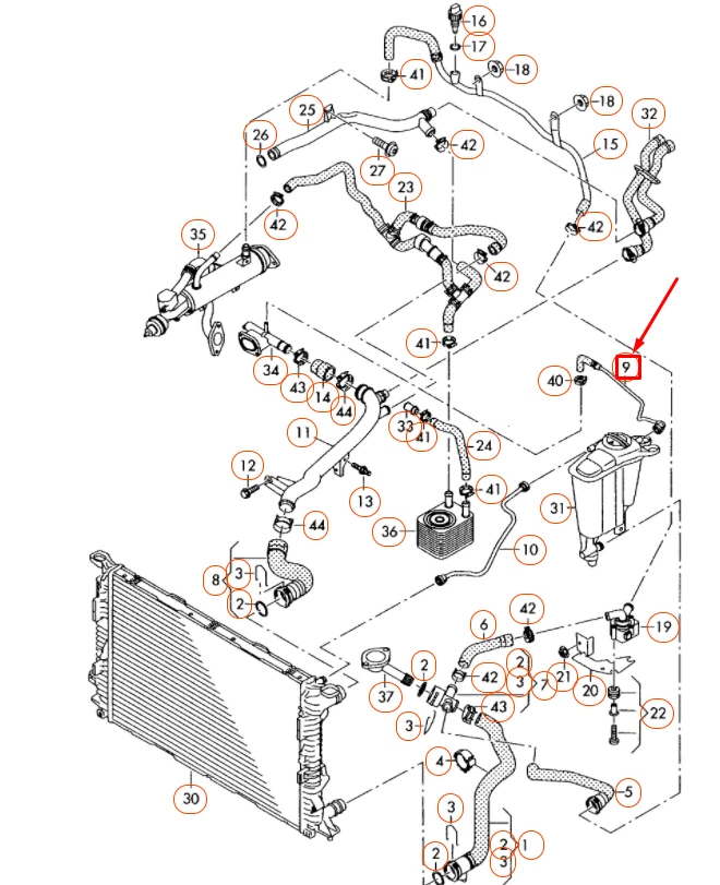 NEW AUDI A4 B8 EXPANSION TANK COOLANT HOSE 8K0121081P ORIGINAL