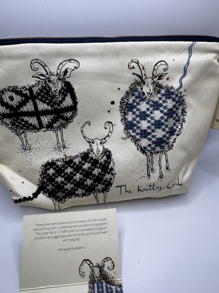 NEW Anne Wright Cosmetic Bag Sheep Ram 9x6 Make Up Zip