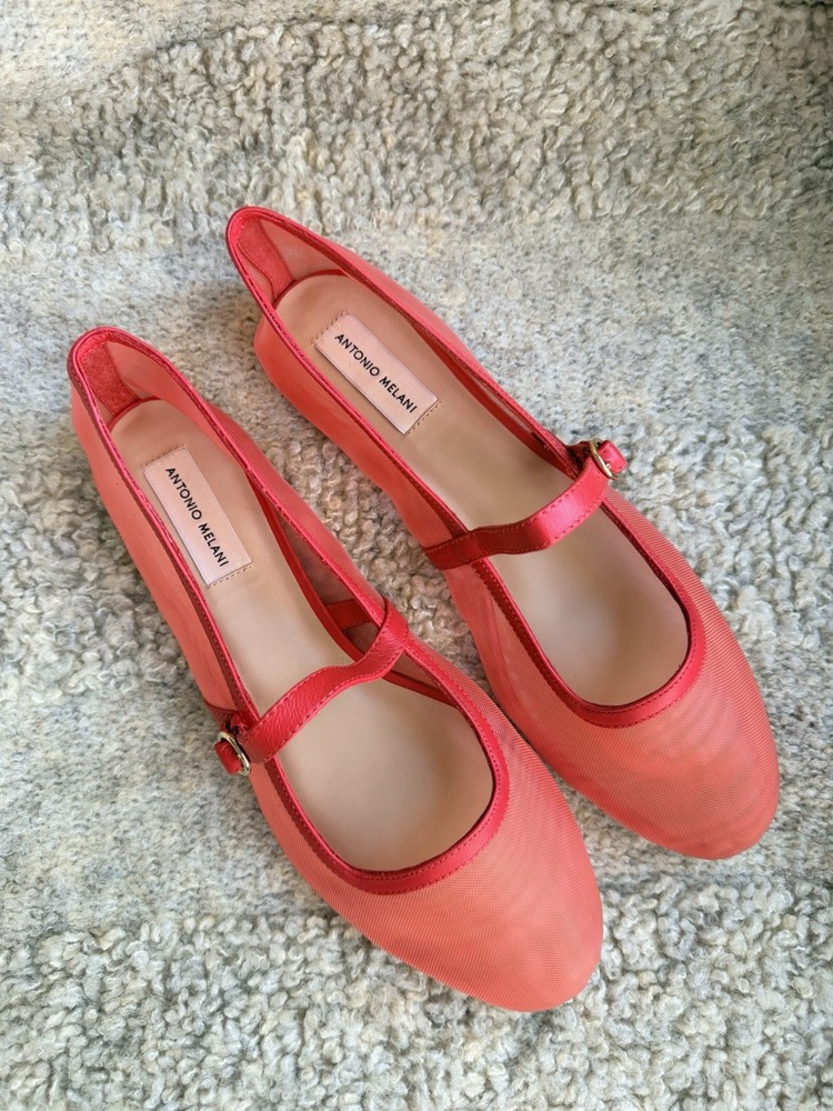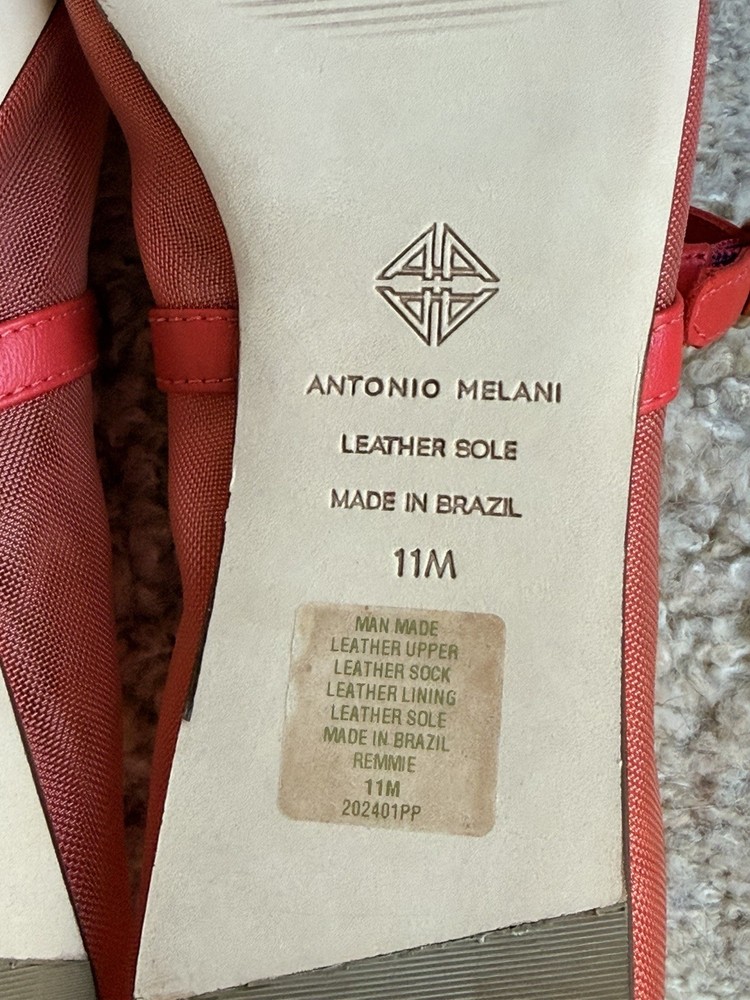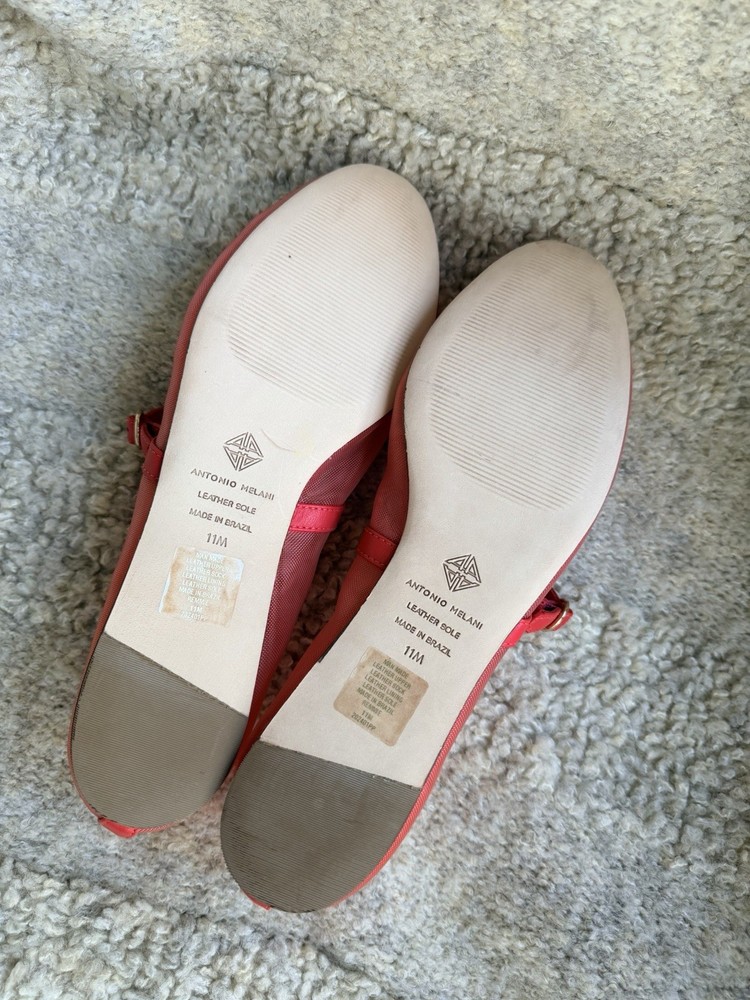 The NEW Antonio Melani Remmie Mesh Mary Jane Flats in red/orange, US size 11, are a stylish and comfortable option for women. Made with mesh fabric and the upper material being mesh as well, these flats are perfect for everyday wear. Designed with a Mary Jane style, these shoes offer a trendy look with a hint of color, making them a versatile addition to any wardrobe. Made in Brazil, these Antonio Melani flats are a quality and fashionable choice for any woman looking for a pop of color in their footwear collection.