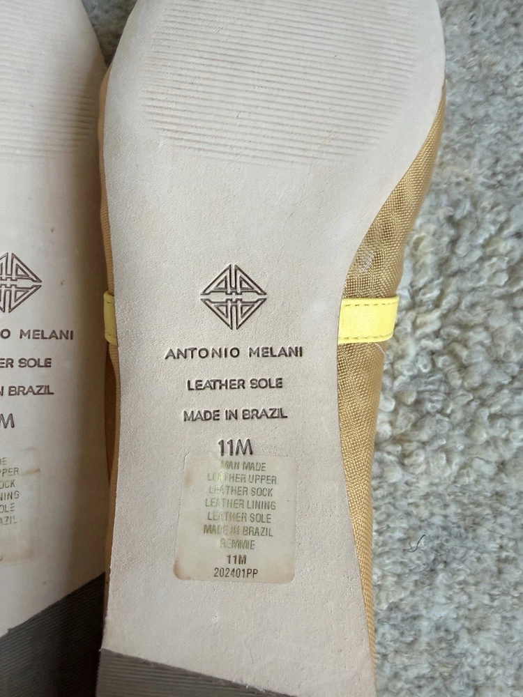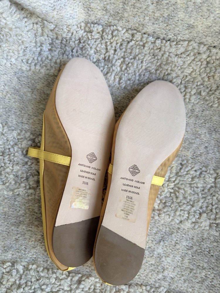 The NEW Antonio Melani Remmie Mesh Mary Jane Flats,, US size 11, are a stylish and comfortable option for women. Made with mesh fabric and the upper material being mesh as well, these flats are perfect for everyday wear. Designed with a Mary Jane style, these shoes offer a trendy look with a hint of color, making them a versatile addition to any wardrobe. Made in Brazil, these Antonio Melani flats are a quality and fashionable choice for any woman looking for a pop of color in their footwear collection.