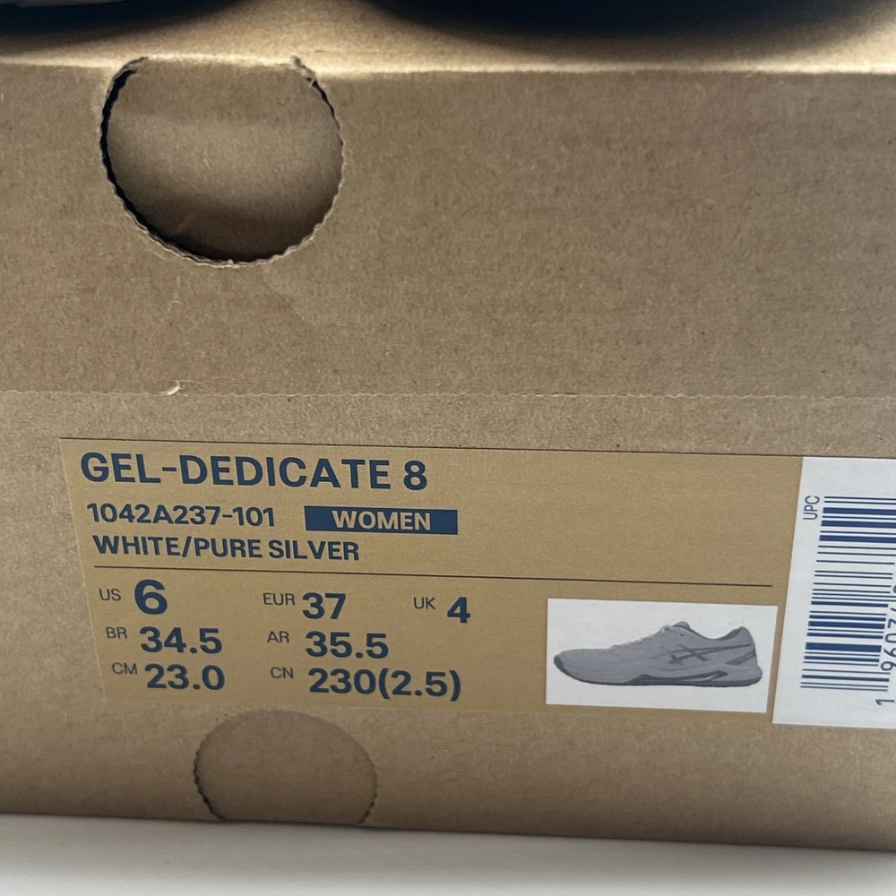NEW Asics Gel-Dedicate 8 1042A237-101 Sneaker Womens SZ: 6 M,White Silver NEW WITH BOX ASICS Gel-Dedicate 8(000000)(7151W7W)