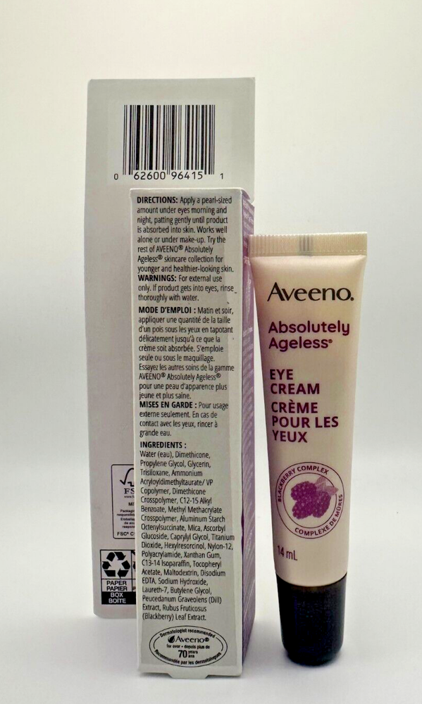 NEW! IN BOX! Aveeno Absolutely Ageless Eye Cream 0.5 oz non-comedogenic 🌟 Brand New Products! 🌟 Enjoy fast and free shipping within the US on all our items! If you have any questions or need assistance before making your purchase, please don’t hesitate to reach out. We’re here to help! 💬 Open to Offers! Looking to buy in quantity? We welcome offers on larger orders—just let us know your desired quantity and price! Thank you for considering our products! Happy shopping! Feel free to customize it further if you’d like!