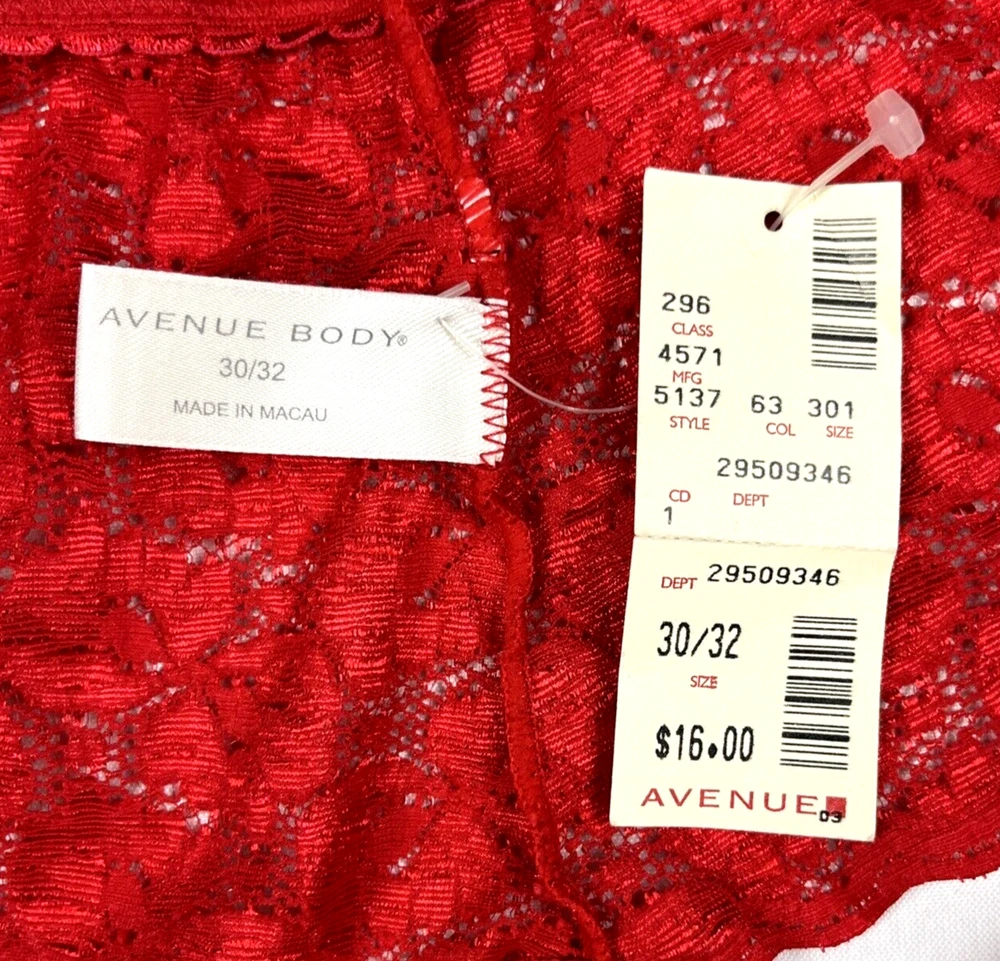 These NEW red Avenue panties have a lace top. They are thong panties. Womens 30/32