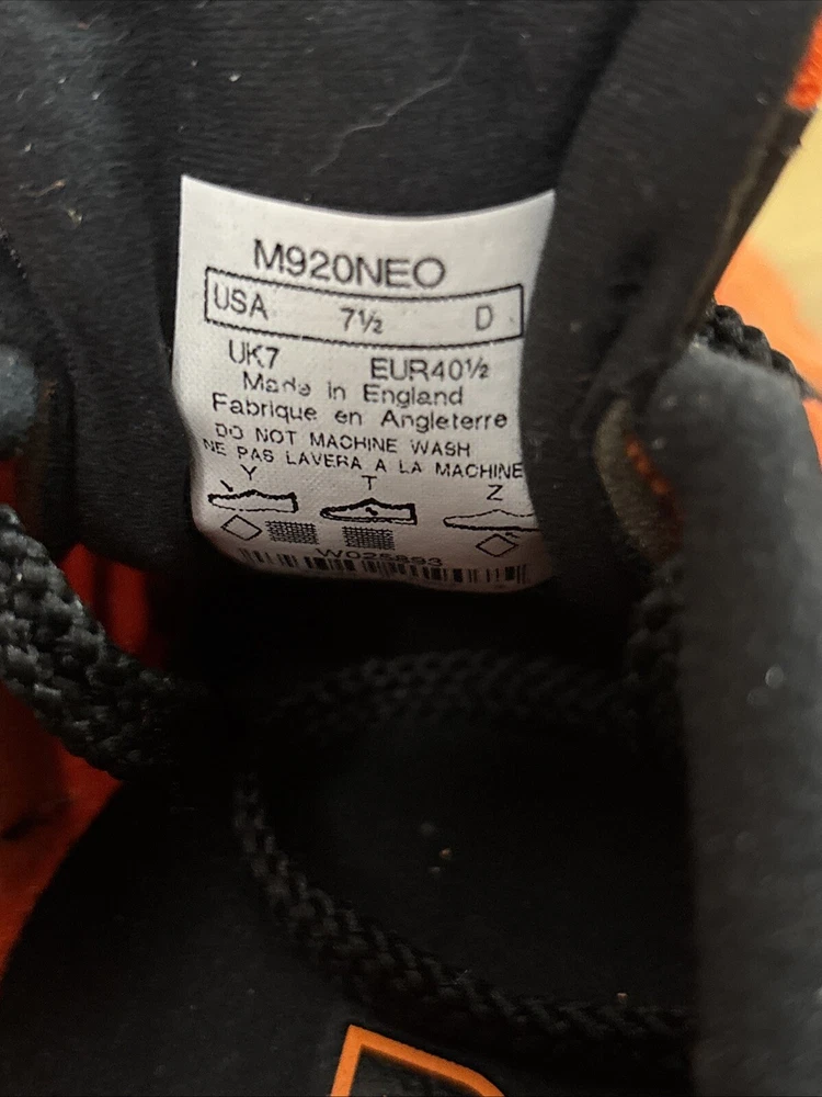 Very lightly worn New Balance 920 Neon Black Orange in a men’s size 7.5 US Tried on / worn once condition Style code M920NEO Original box missing lid