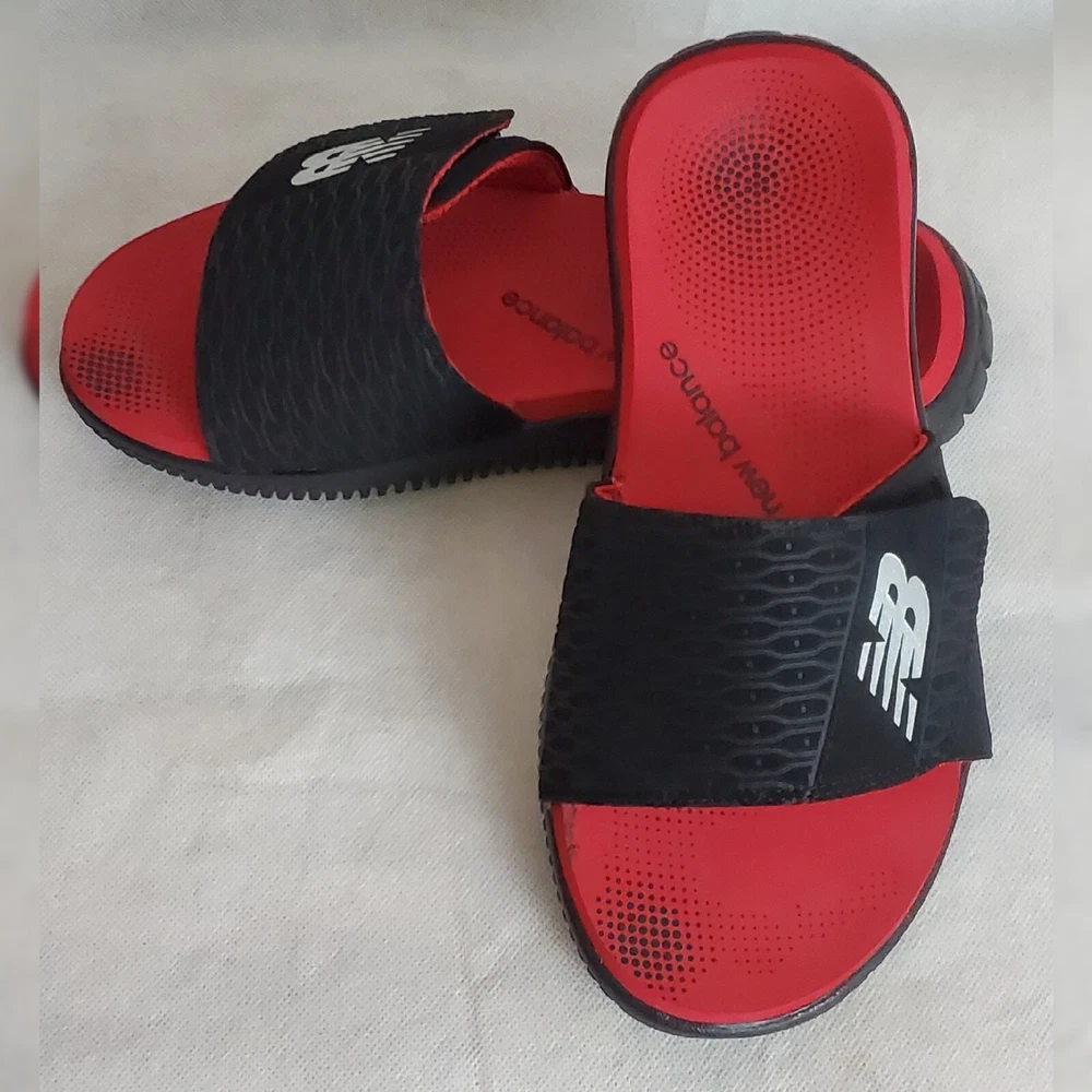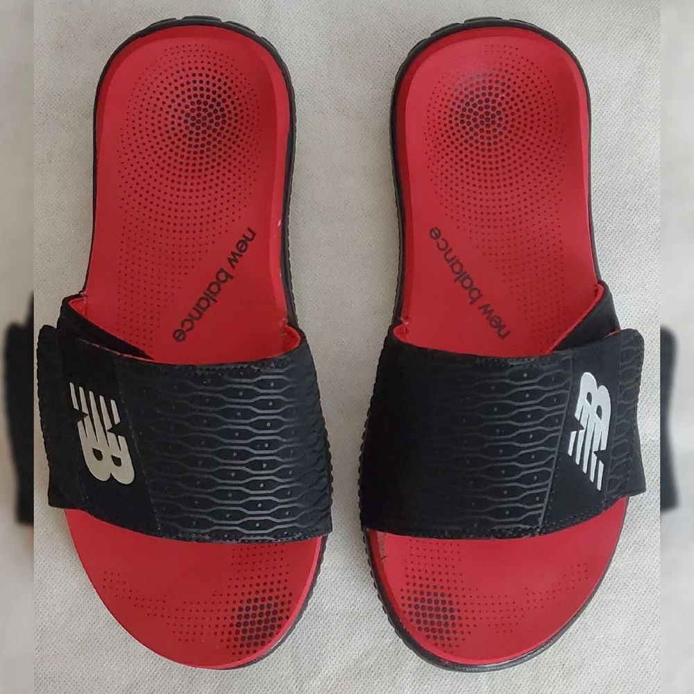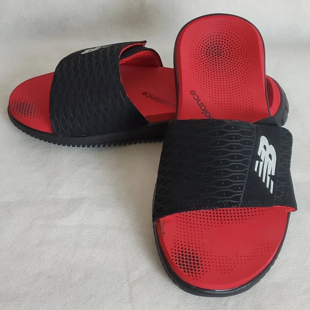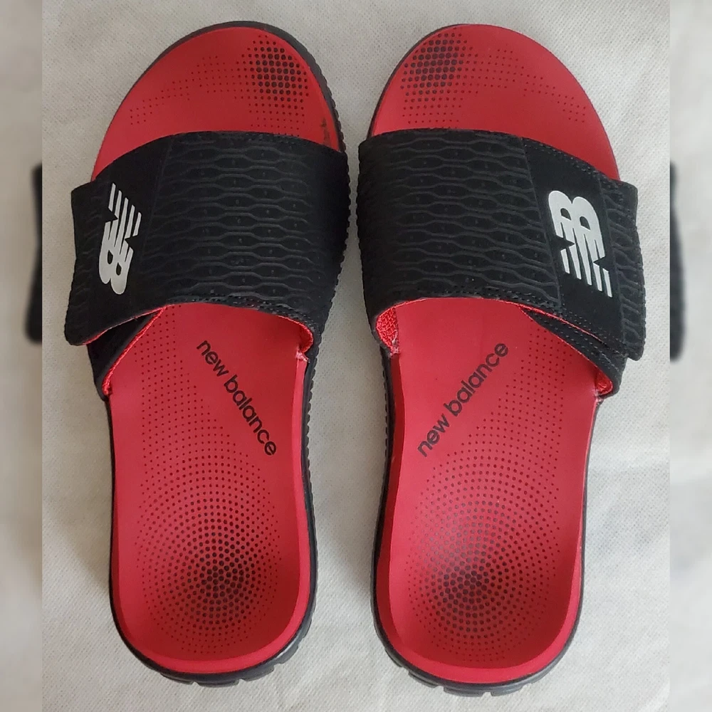 NEW BALANCE AUTHENTIC MOJO SLIDE SANDALS MEN'S ADJUSTABLE STRAP SIZE 8 RED/BLACK COMFORT.CONDITION IS WITH TAGS.