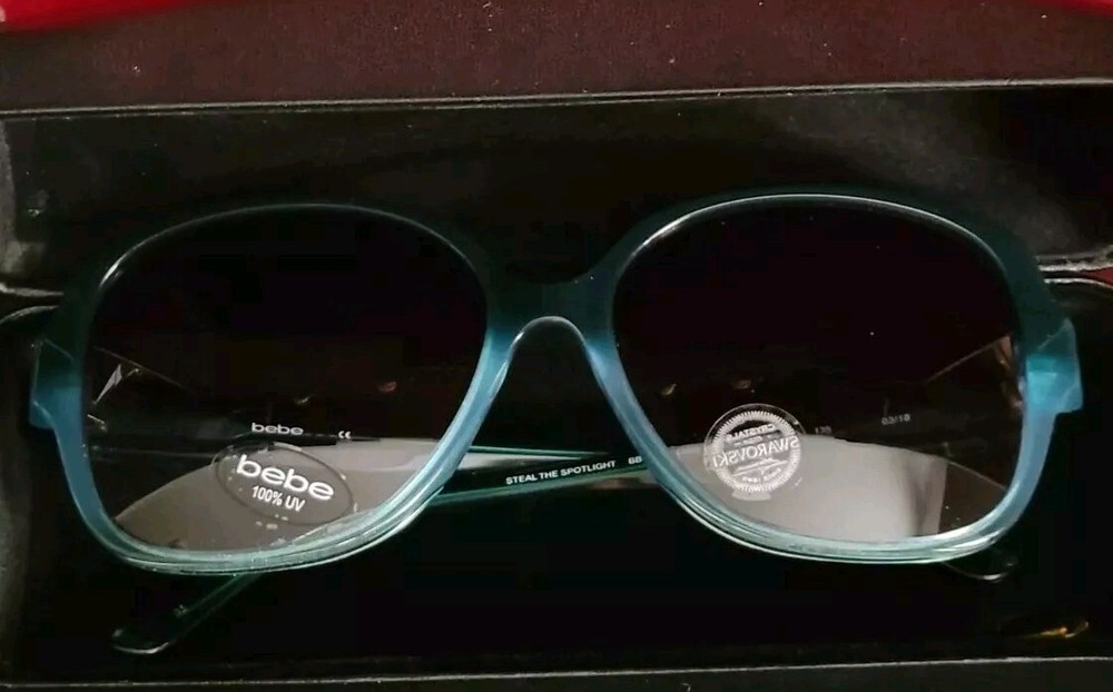 NEW WITH CASE BEBE Teal Fade Butterfly Sunglasses W/ Swarovski Crystals D E T A I L S Steal the spotlight with this gorgeous model from Bebe. Featuring a butterfly silhouette made from acetate in a teal fade finish. Swarovski crystal pattern adorn temples. Fitted with grey gradient lenses ideal for beach/poolside reading while providing 100% UV protection from the sun's harmful rays. Guaranteed brand new and authentic Includes storage case Lens Technology: Gradient Frame Material: Acetate Frame Color: Teal Fade Protection: 100% UV Lens Color: Black Lens Width: 56mm Bridge Width: 15mm Temple Length: 135mm COMBINE SHIPPING DISCOUNT USING EBAY CART, $3 OFF ON EACH ADDITIONAL ITEM, THE DISCOUNT WILL BE APPLIED AUTOMATICALLY AT CHECKOUT. ***ALL THE ITEMS ARE 100% AUTHENTIC, BUY WITH CONFIDENCE *** ***PETS AND SMOKE FREE LOCATION*** Best brands better prices: BCBGMAXAZRIA, bebe*, Michael Kors*, Etc. New items are added daily!! Every item is listed individually including size, color and style, please buy directly the item in the size and color you want. PLEASE SEE MY OTHER ITEMS TO SEE THE ITEMS IN YOUR SIZE! VISIT MY STORE! CLICK ON SAVE SELLER! FOLLOW ME! Thank you for giving me the opportunity to share with you my products. I strongly believe that quality, blended with excellent service, is the foundation for successful business.