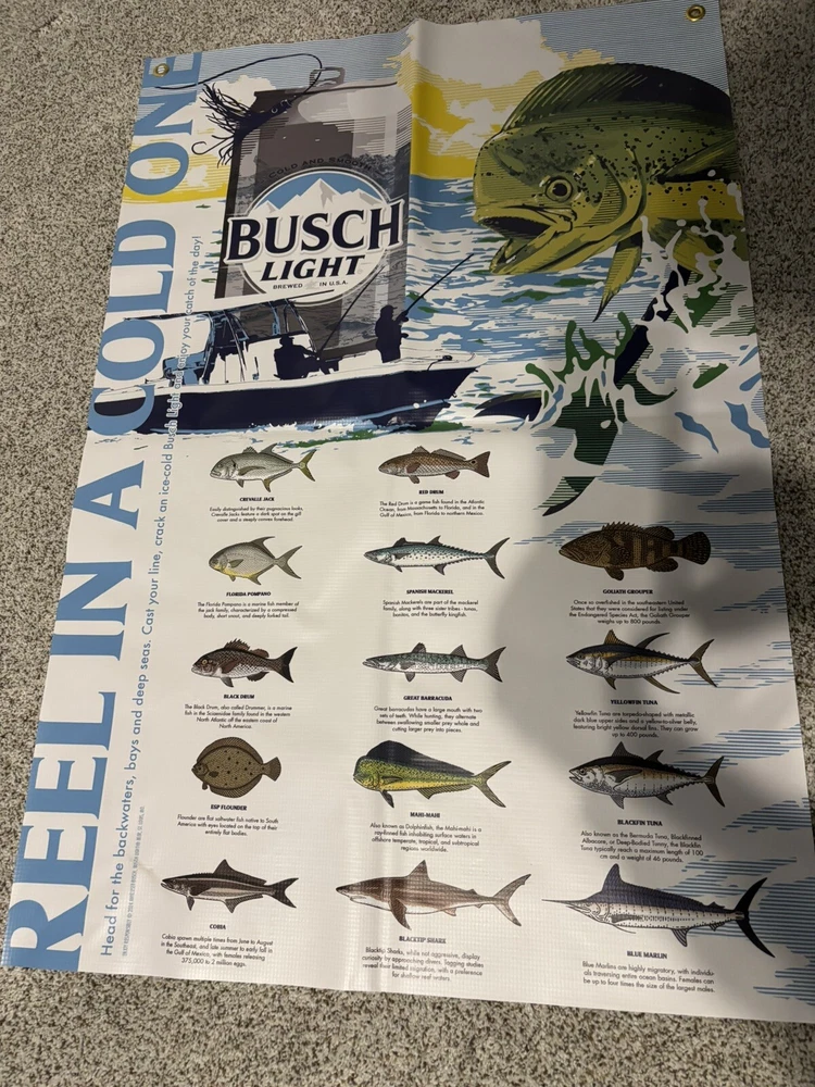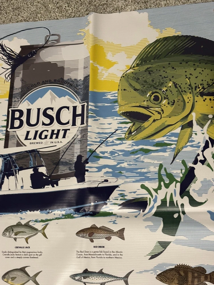 NEW BUSCH Light FISHING BANNER SIGN BEER MAN CAVE SALT WATER